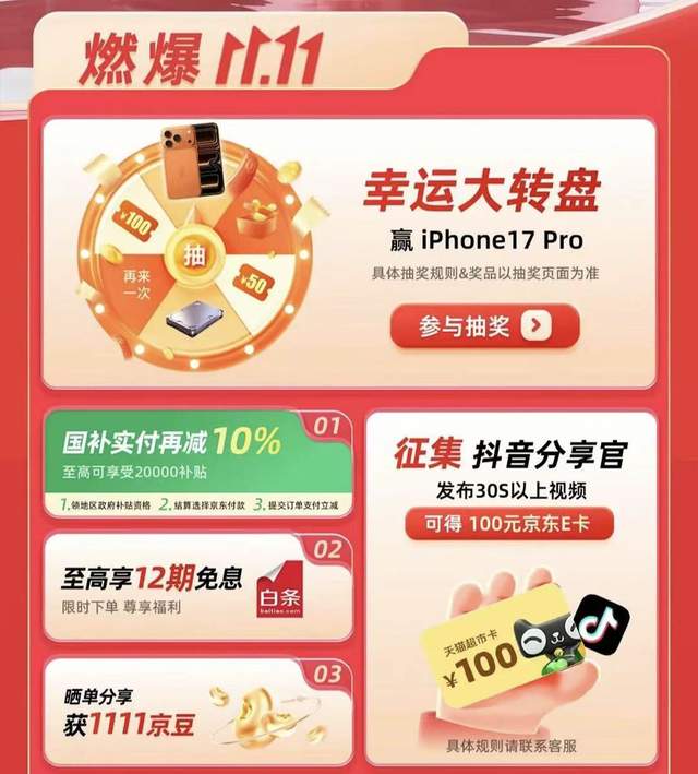 写在最后极空间此次双十一的优惠力度堪称年度之最,全系新品都能享受10%的国补优惠,再叠加平台的各种补贴券,多数热门款机型达到历史最低价,新发布的机型还有专属优惠券,首发用户完成晒单可以获得1111京豆,在短视频平台发布30秒以上的真实体验视频还能获得100元京东E卡,此外每天还能参与幸运大转盘抽奖,有机会获得iPhone 17 Pro、30T硬盘等超级大奖。