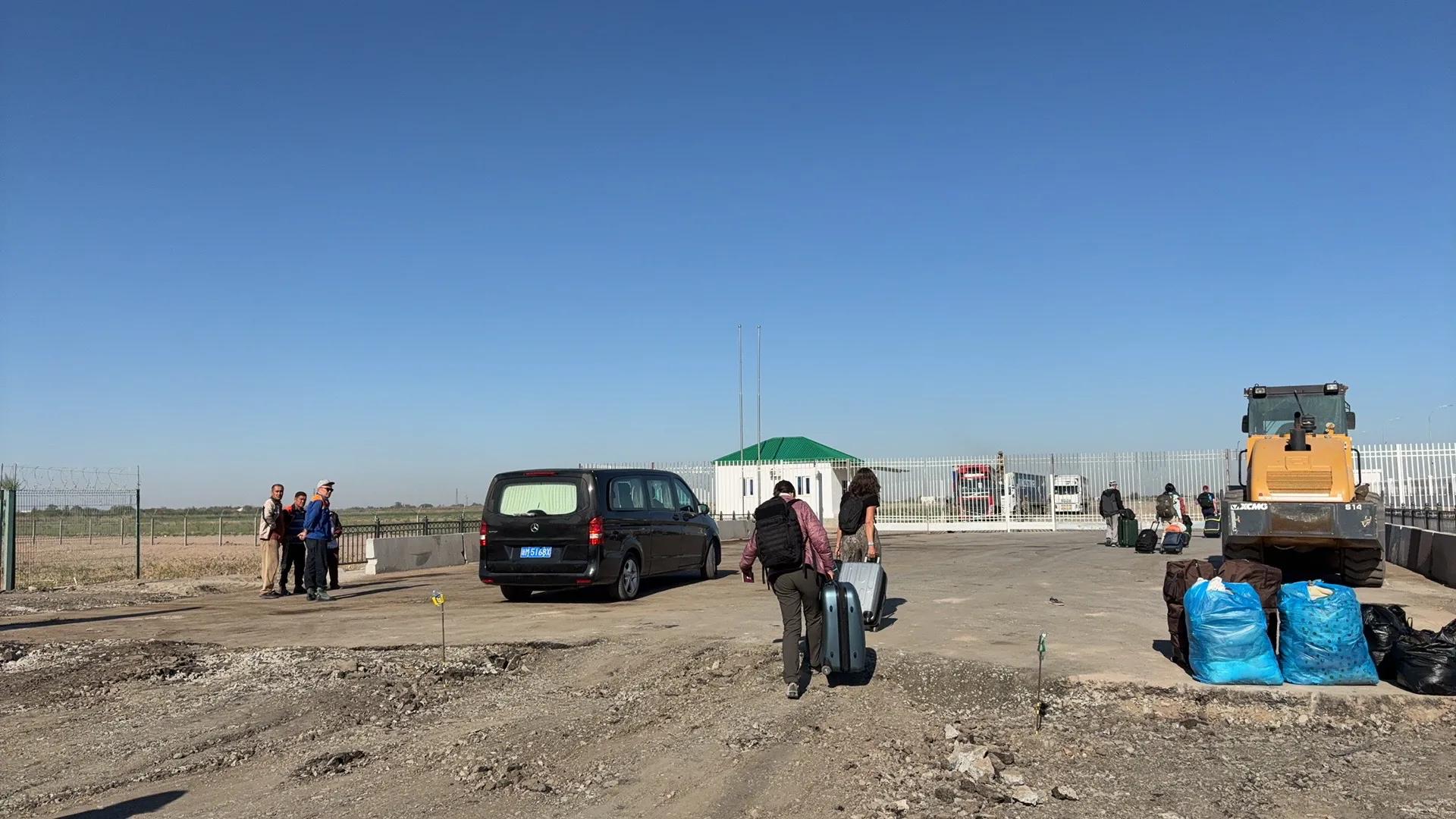 然后在海关和我们土库曼的导游阿森纳见面了,我们把一切文件手续都交给他,他去海关办理相关手续,我们只需要等待就可以了。期间我们做了核酸、拿着邀请函办理了落地签、办理了车辆入境检查和缴费,买了车辆保险,都下来差不多又花了一千多美元,然后就可以正式进入土库曼境内了。午餐是在过了海关的达绍古兹吃的,吃完饭去加油,艰难的旅程即将开始。