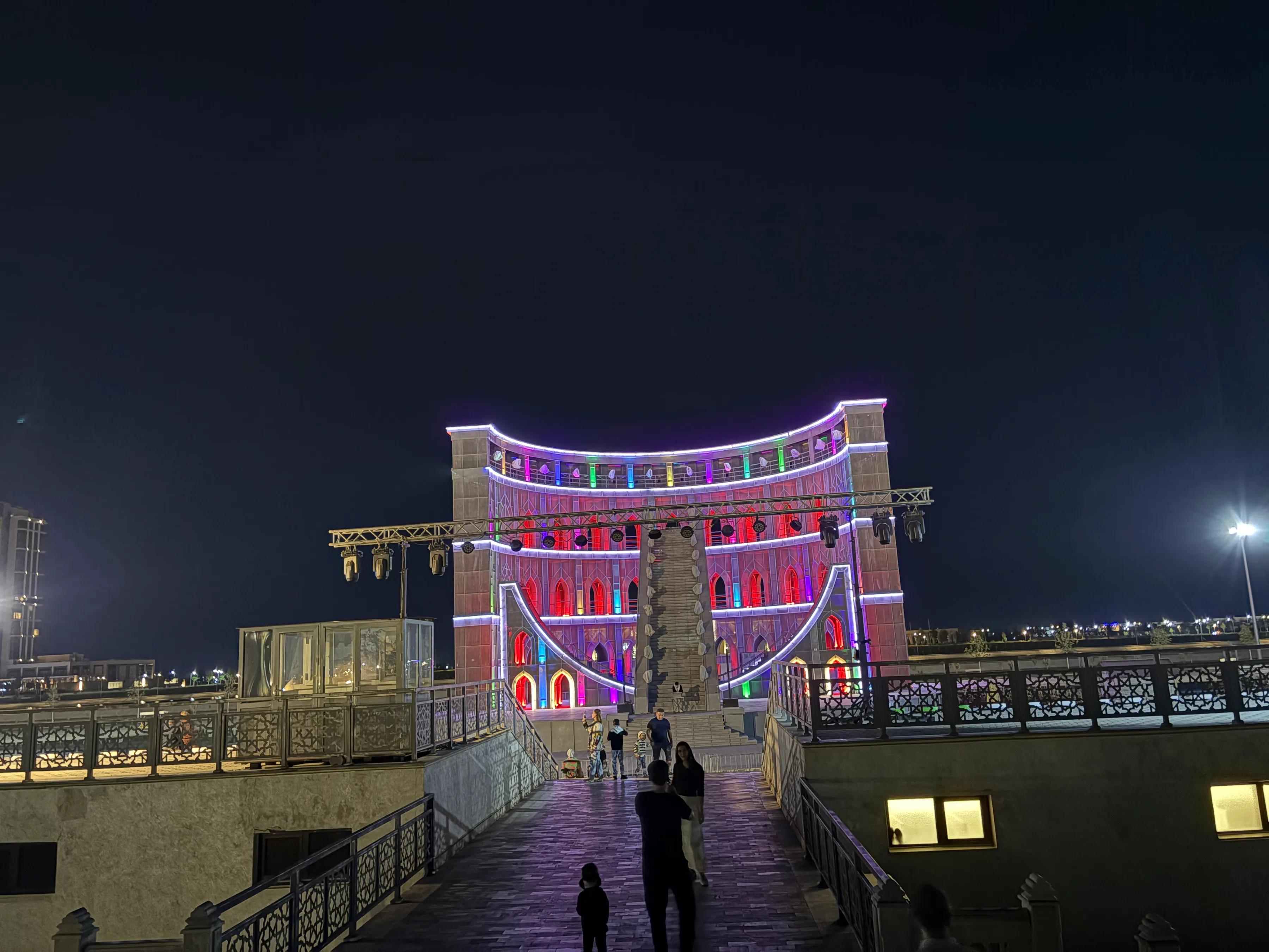 地狱之门只有晚上没有太阳的时候好看,天一亮就啥也看不到了,七点吃完早饭,我们离开地狱之门继续往首都阿什哈巴德走,又颠了两三个小时,终于又来到了加油站。也就意味着后面都是好路了。我们的车是黑颜色的,按照规定不能进入阿什哈巴德市区,因此只能把车停在郊区,旅行社派了一辆商务车来接我们。接上我们先吃午饭,然后送到酒店洗漱一下,之后开始阿什哈巴德市区内游览和去体验骑乘汗血宝马。阿什哈巴德市区依旧是如此繁华和落寞,好处是今天的这个酒店WiFi连上之后可以上微信。