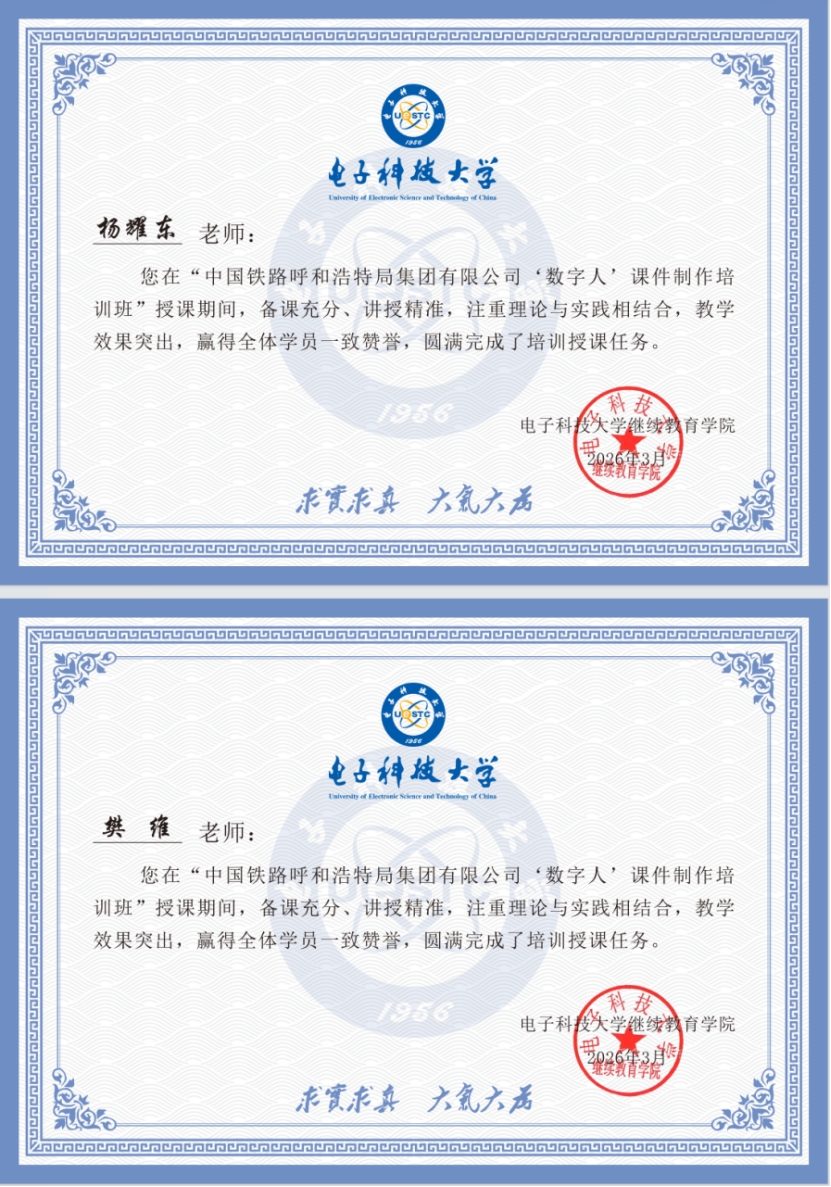 2026年3月25-31日“中国铁路呼和浩特局集团有限公司‘数字人’课件制作培训班”在成都电子科技大学沙河校区顺利举办。来自中国铁路呼和浩特局集团有限公司各部门及所属单位的60余名业务骨干参加本次培训。
