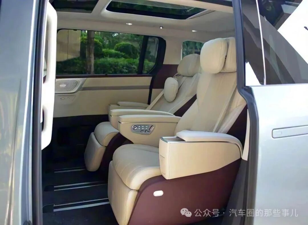 车辆二排提供双零重力座椅,并在扶手内侧配备座椅功能调节按键。此外,新车还将配备21.4英寸二排娱乐屏。车辆三排支持座椅调节、靠背折叠、翻转收纳,可支持4/6翻折收纳。