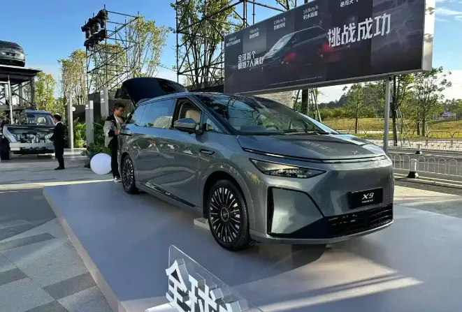小鹏X9增程版的CLTC工况下纯电续航为452公里,综合续航为1602公里,燃油消耗量为6.4L/100km。新车支持5C超充,10分钟充电能增加313公里的纯电续航里程,10-80%充电时间为11.7分钟,还有6kW V2V/V2L外放电。