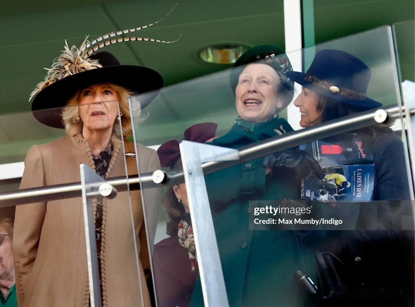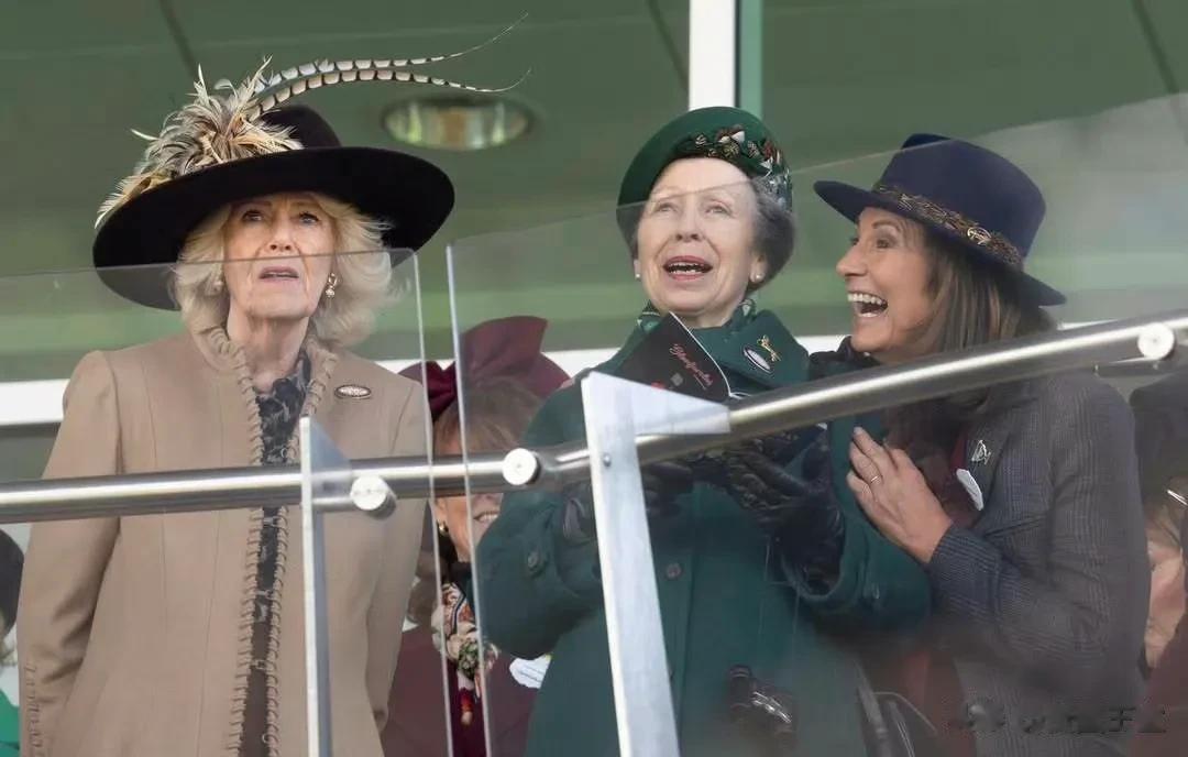 备受热议的是这个画面,在观赛期间,卡米拉王后、安妮长公主、卡罗尔·米德尔顿同框了。凯特王妃的母亲卡罗尔完全沉浸在赛事中,看起来心情很激动,当然表情也夸张了一些。