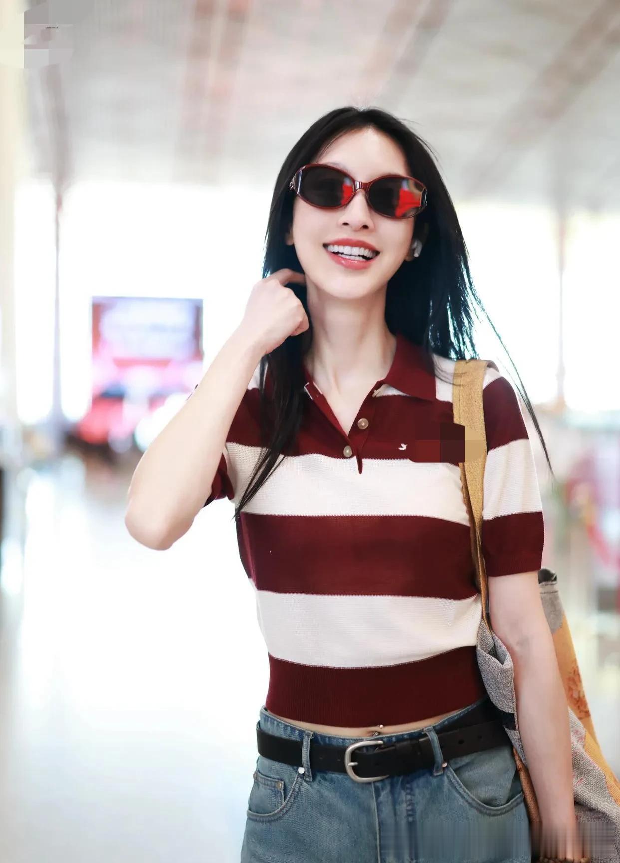 张俪会穿是数一数二的!条纹polo衫+弯刀牛仔裤,时髦洋气又减龄