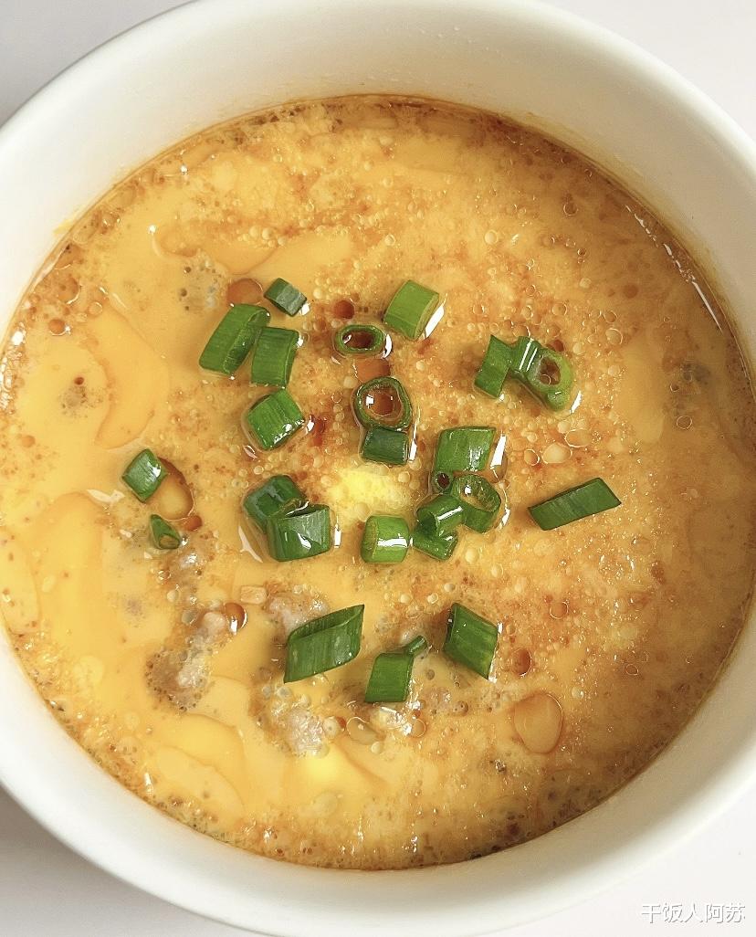 蒸好后的肉馅,需要进行一个重要的“去水”步骤。打开锅盖,你会发现碗底积攒了一层汤汁。这层汤汁虽然鲜美,但含有较多油脂,如果不处理,会影响后续鸡蛋的凝固和口感。用勺子轻轻舀出多余的汤汁,只保留少许底味即可。然后,用筷子将蒸熟的肉末轻轻打散,使其均匀分布在碗底。这一步不仅能让肉末和鸡蛋更好地融合,还能避免蒸好的蛋羹出现“肉块堆积”的情况,让每一口都能吃到肉香。