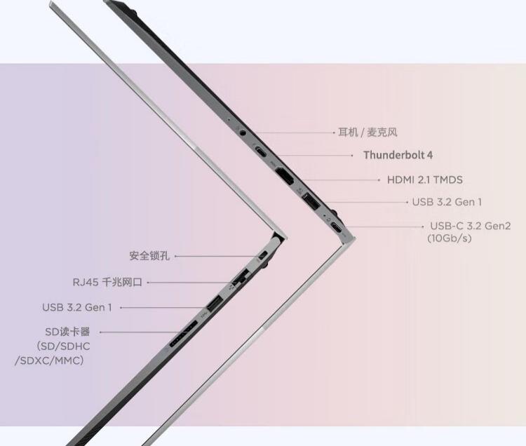对于经常出差或需要在会议室演示的职场人来说,接口齐全就是“救命”的功能。ThinkBook 14机身轻至1.4kg,薄至16.9mm,却塞进了丰富的接口: