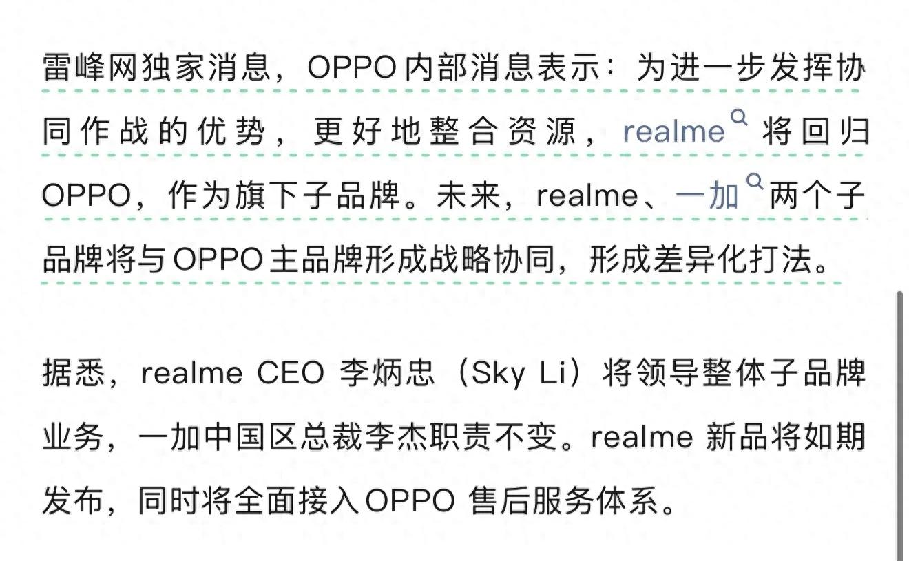 据雷锋网独家消息:OPPO官宣realme将正式回归,成为其旗下子品牌,与此前已整合的一加形成“双子牌”战略协同。这意味着曾经独立闯荡的realme,时隔数年后重新归入OPPO体系,而这场整合背后,不仅是OPPO集团资源的重新梳理,更是手机行业存量博弈下的必然选择。