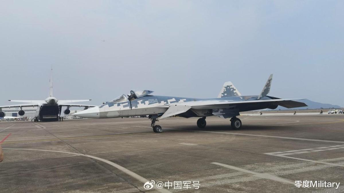 11月3日,首架参加珠海航展的苏-57原型机从俄罗斯起飞,经停太原武宿国际机场加油,抵达中国南部广东省珠海金湾机场。这架飞机是第4架原型机,即T-50-4,机身编号“蓝色054”。