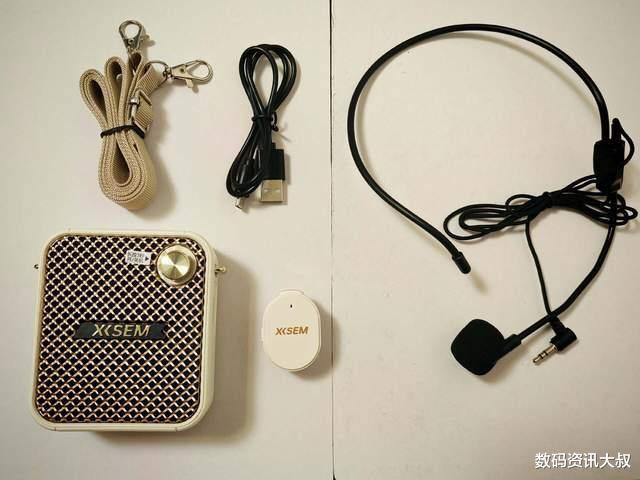 在西圣BEE小蜜蜂的包装盒中,拥有领夹和有线麦克风、充电线、扩音器挂绳、说明书以及扩音器等等,基本是市面上同类产品的标配。