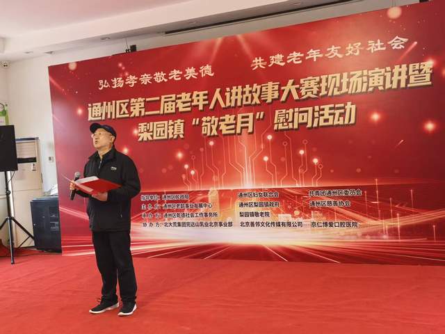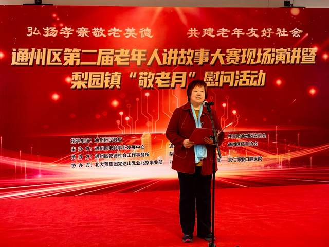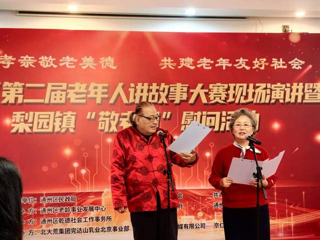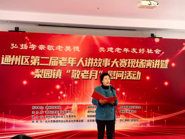 (记者 常魁星)金秋送爽,丹桂飘香。十月份是全国“敬老月”,在“重阳节”来临之际, 10 月 22 日下午,“共建孝亲敬老美德、共建老年友好社会” 北京市通州区第二届讲故事大赛现场演讲暨梨园镇 “敬老月” 慰问活动在梨园镇敬老院圆满举行。本次活动由通州区民政局、通州区妇女联合会、共青团通州区委员会指导,通州区老龄事业发展中心、通州区梨园镇政府、通州区慈善协会主办,通州区乾德社会工作事务所与梨园镇敬老院承办,北大荒集团完达山乳业北京事业部、北京善邻文化传媒有限公司、京仁博爱口腔医院等爱心企业协办,以文化赋能敬老服务,为通州区老龄事业发展注入新活力。