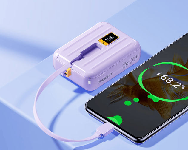 这款品胜充电宝在便携性上表现还不错,85*65*32.5mm 的尺寸不算大,208.5g 的重量揣口袋、放小包都能装下,日常出门携带还是比较方便的。它自带双线 + 额外 Type-C 口的组合,覆盖了主流设备的充电需求,不用再准备一堆线材,30W 的功率满足日常快充,协议适配性也可以,给手机充电速度在线。马卡龙配色颜值在线,适合学生党、女生日常使用。不过它的短板也很明显,塑料外壳质感不算高,用久了容易留划痕,外观设计偏甜美,简约风爱好者接受度不高,额定容量只有 5500mAh,实际给手机充不了两次,不适合长途出行。