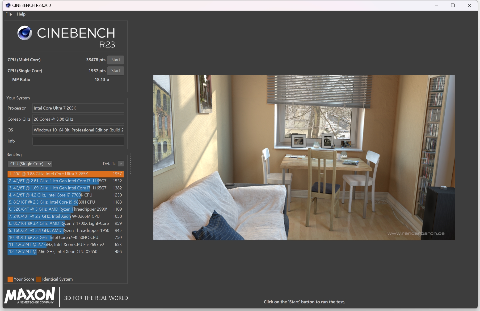 这个环节,英特尔® 酷睿™ Ultra 7 处理器 265K多核测试结果35478 pts,单核1957 pts,MP Ratio 18.13x。