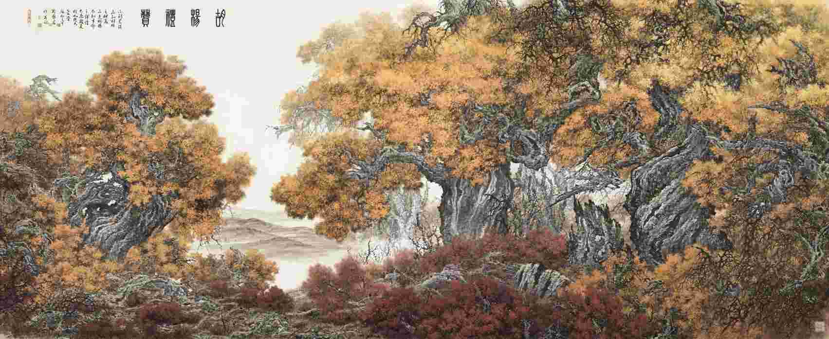 From 2004 to 2009, over a span of five years, he meticulously created a massive scroll painting titled "Ode to Populus Euphratica" measuring 70 meters in length and 2.5 meters in height. Mr. Zhang Ding specially inscribed the title for the scroll. He is adept at ink landscape painting, with a style that is vast, profound, magnificent, and dignified. He stands out uniquely in the field of landscape painting. He is a painter with a profound sense of social responsibility and a broad-mindedness. He treats landscape painting as history and epic poetry, and his works often depict the main themes of the times, promoting the indomitable and relentless spirit of the Chinese nation.
