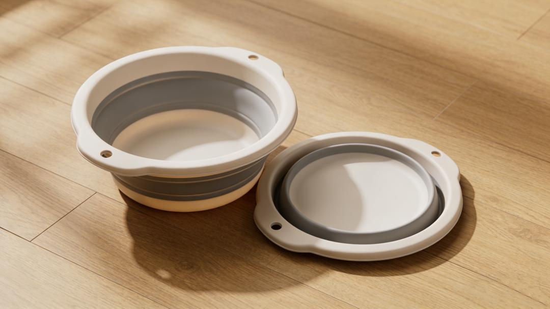③折叠式脸盆:现在网上有很多硅胶折叠脸盆,完美解决了“占地”和“美观”两大痛点——不用时,可以压扁成薄薄一片,轻松塞进缝隙角落;使用时,直接展开,容量和普通塑料盆差不多,实用性一点也不差。