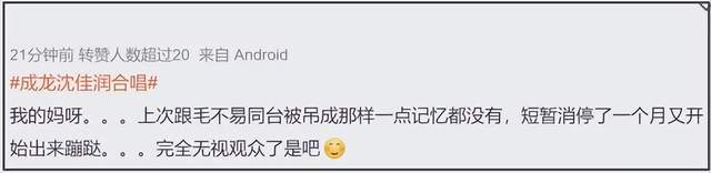 按娱乐圈常理,这样的业务能力质疑往往会影响到后续资源。但沈佳润的案例恰恰相反——争议越大,资源越好。跨年事件后,她反而接到了更多商务合作和舞台邀请,直到这次与成龙合作电影推广曲,将“资源咖”的争议推至顶峰。