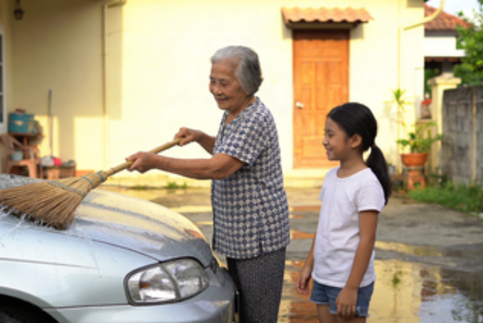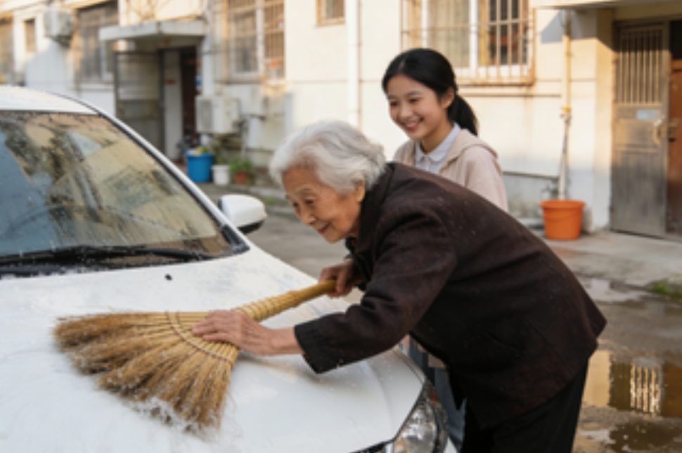外婆的扫帚或许不懂车的娇贵,但它懂得什么是“疼”。