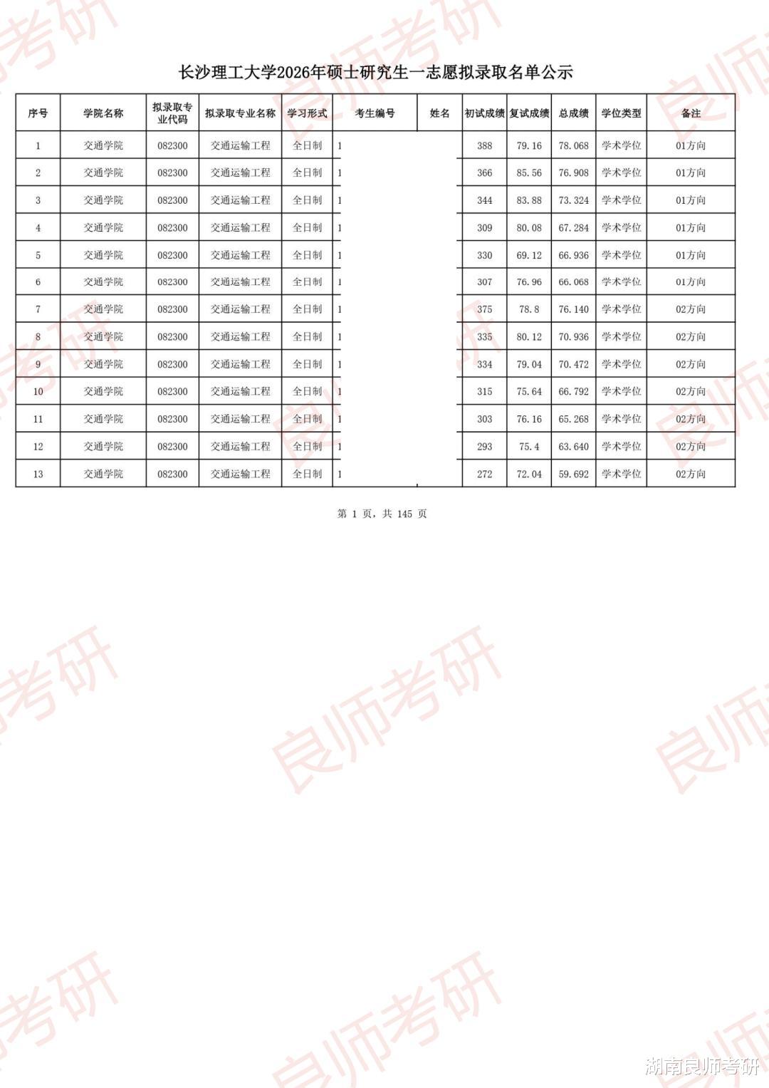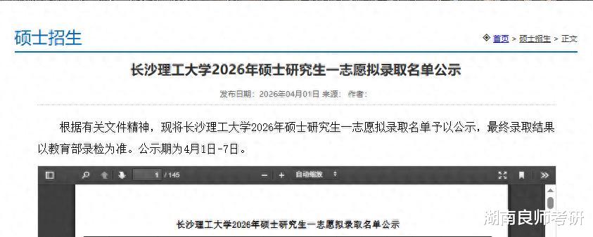 发布了发布了!长沙理工大学发布了2026考研一志愿名单啦!