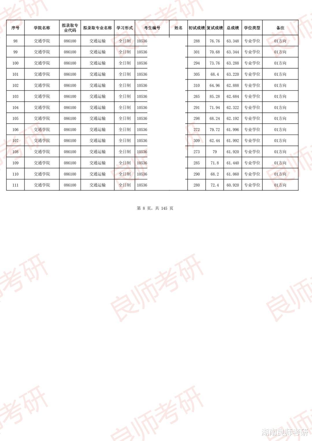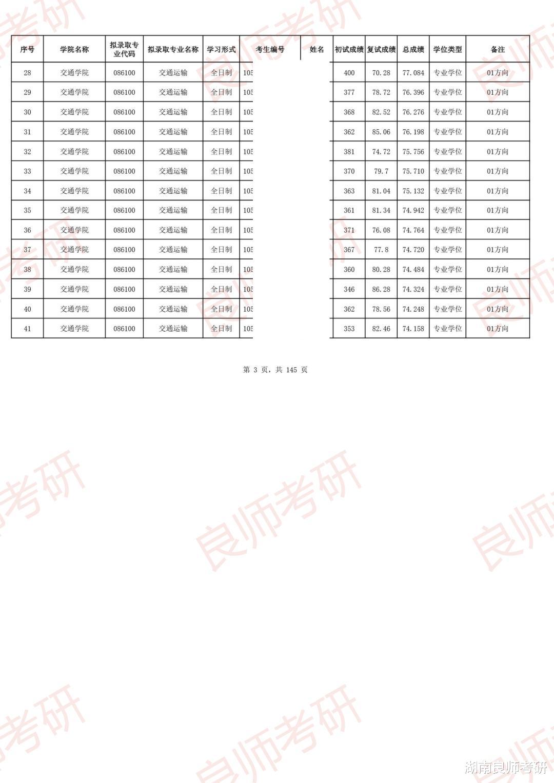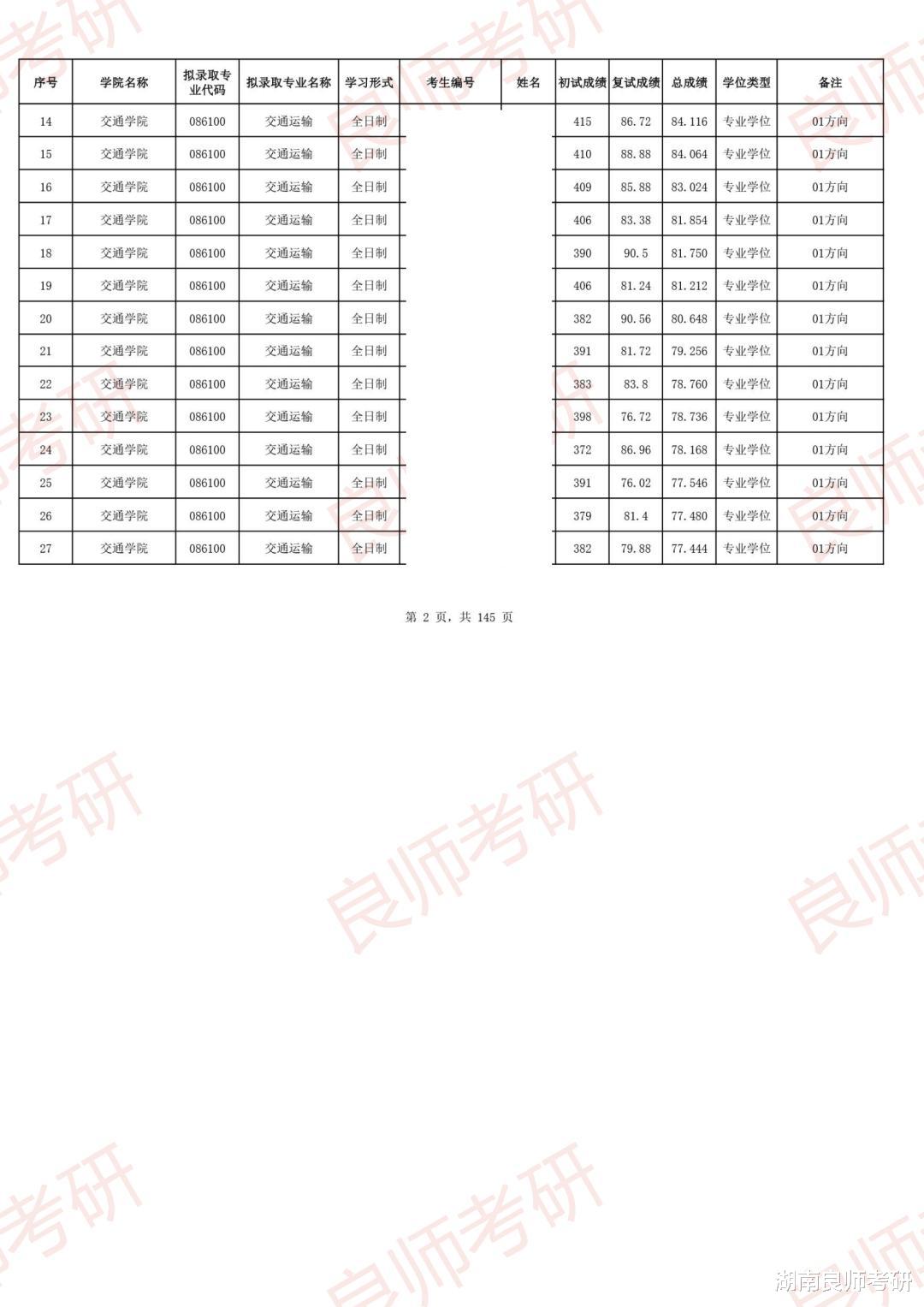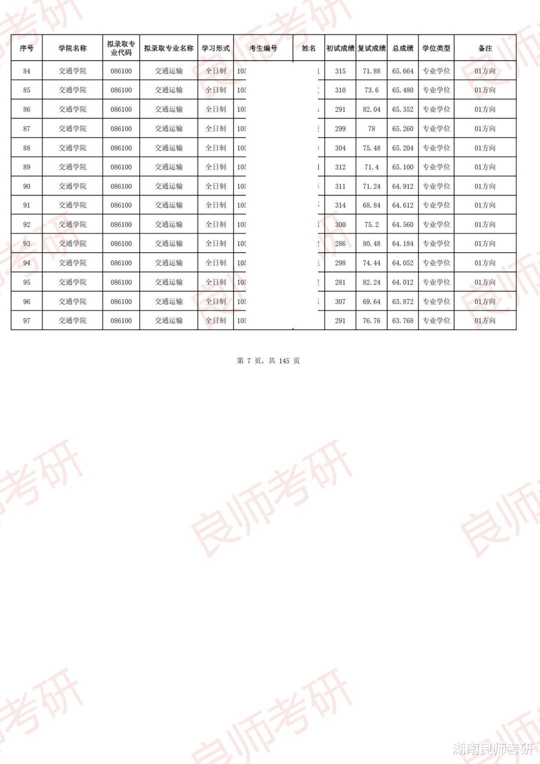 以下为长沙理工大学26考研一志愿复试拟录取名单(部分)