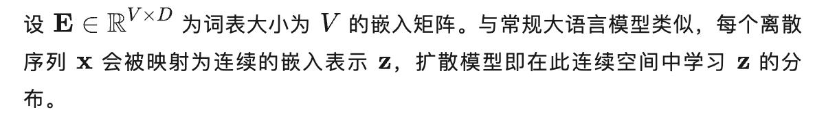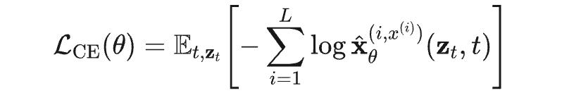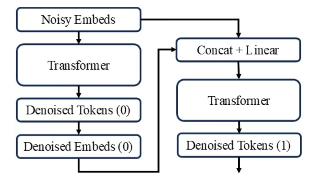 研究团队采用了 embedding 空间上的 diffusion 框架。模型输入带噪的 embedding,预测干净 token 的概率分布,然后以封闭形式算出 diffusion 的去噪目标。