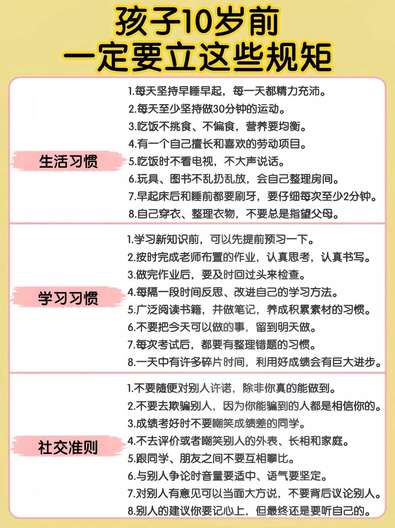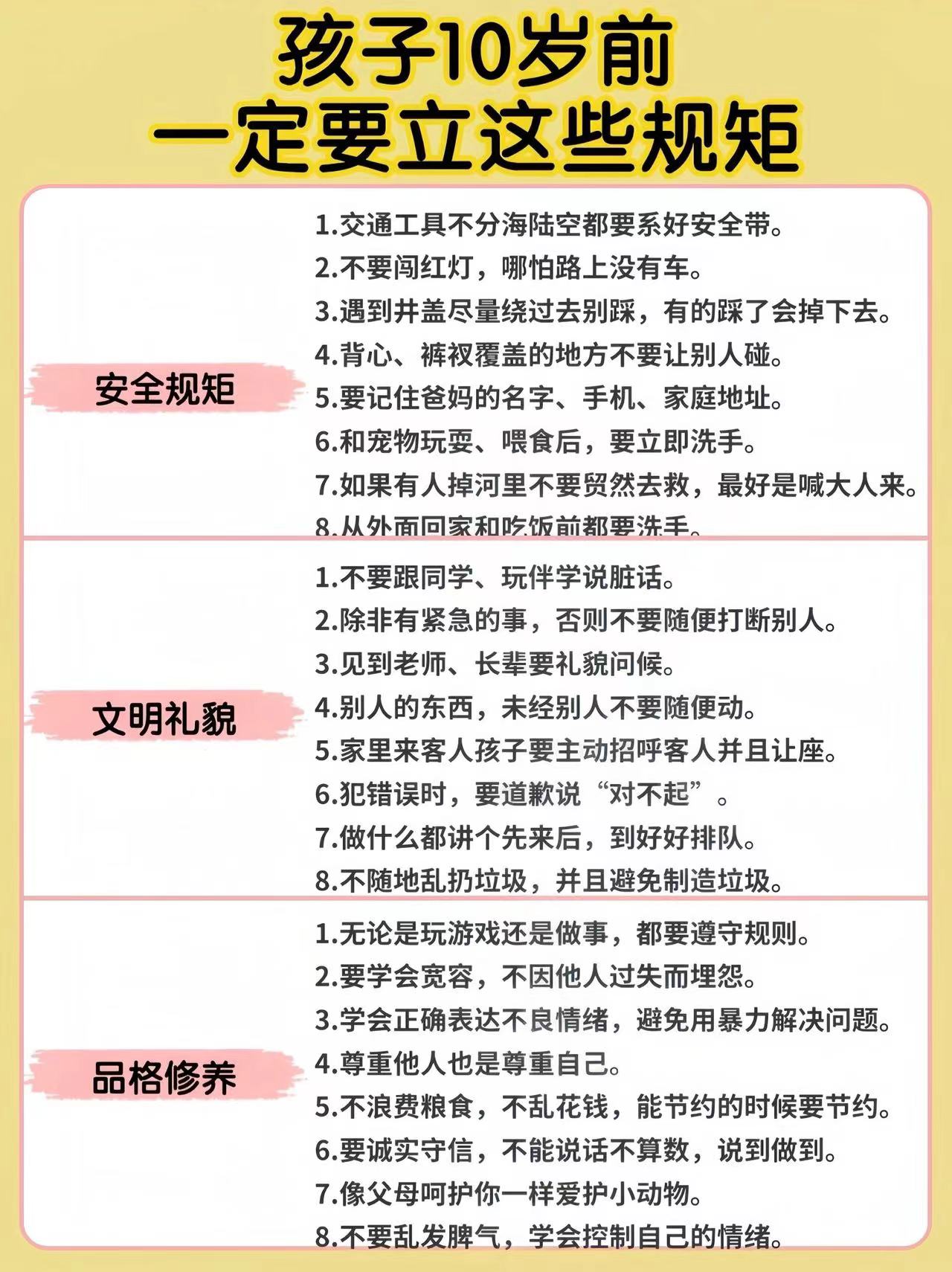 规矩都是教出来的,父母不教,孩子就不懂规矩;父母不管,孩子就不知敬畏。从小帮孩子立规矩,才是对孩子最大的负责。图文来源: