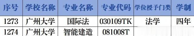 2024年3月,教育部公布了2023年度普通高等学校本科专业备案和审批结果,学校申报的智能建造、国际法2个本科专业获批。