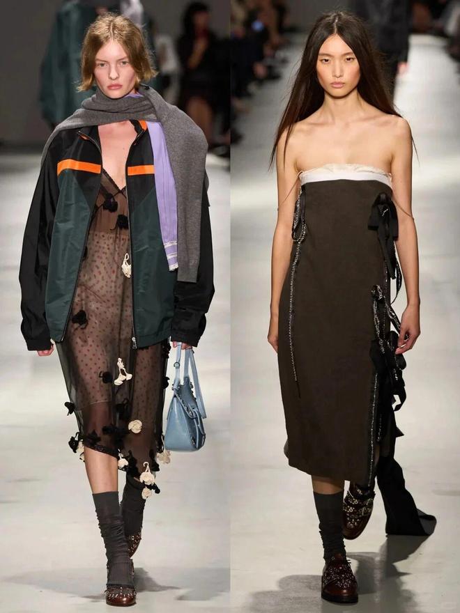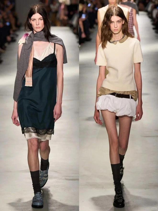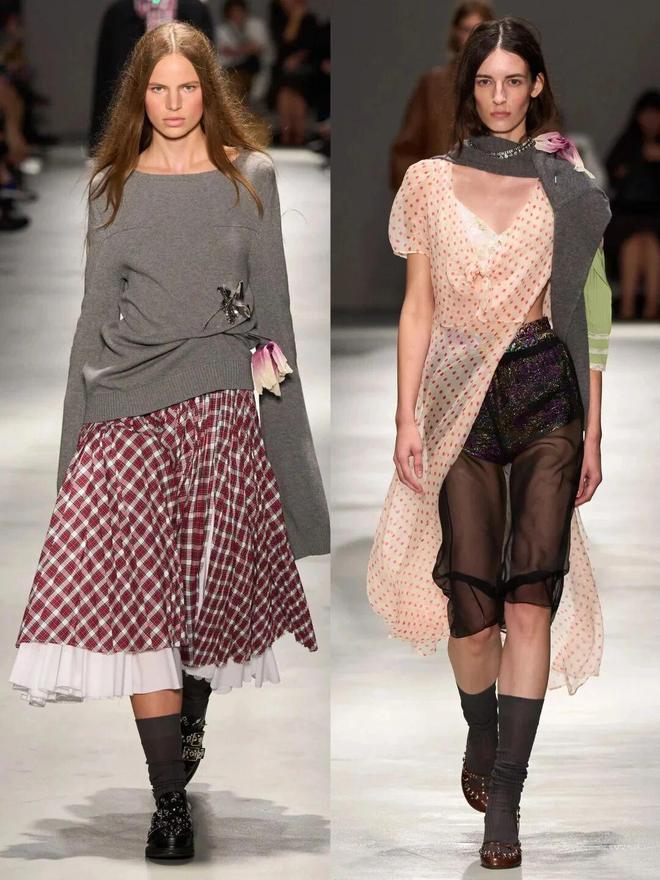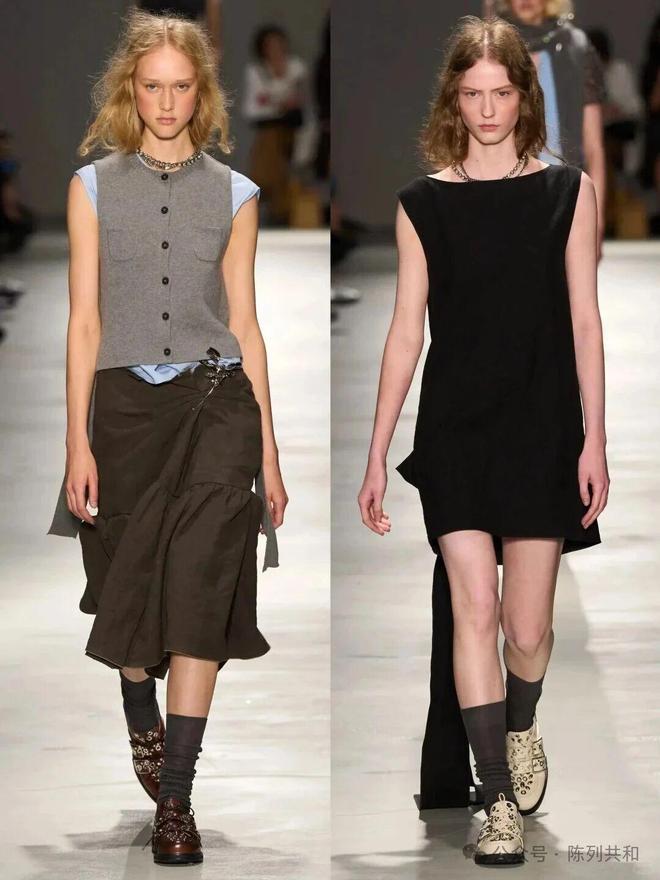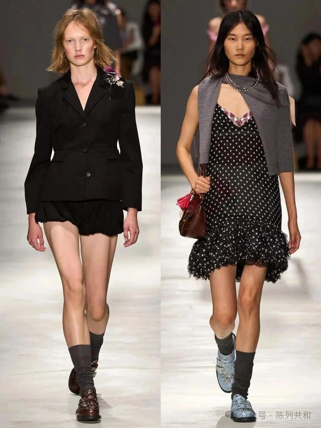3.该系列将多种风格元素巧妙融合,既有学院风的鞋子与袜子搭配,带来青春活泼的感觉;又有迷你礼服裙等展现出的精致优雅;还有性感帅气的皮衣、风衣等单品,使整个系列呈现出丰富的层次感和多元化的风格特点,表达了对女性魅力的多元诠释。