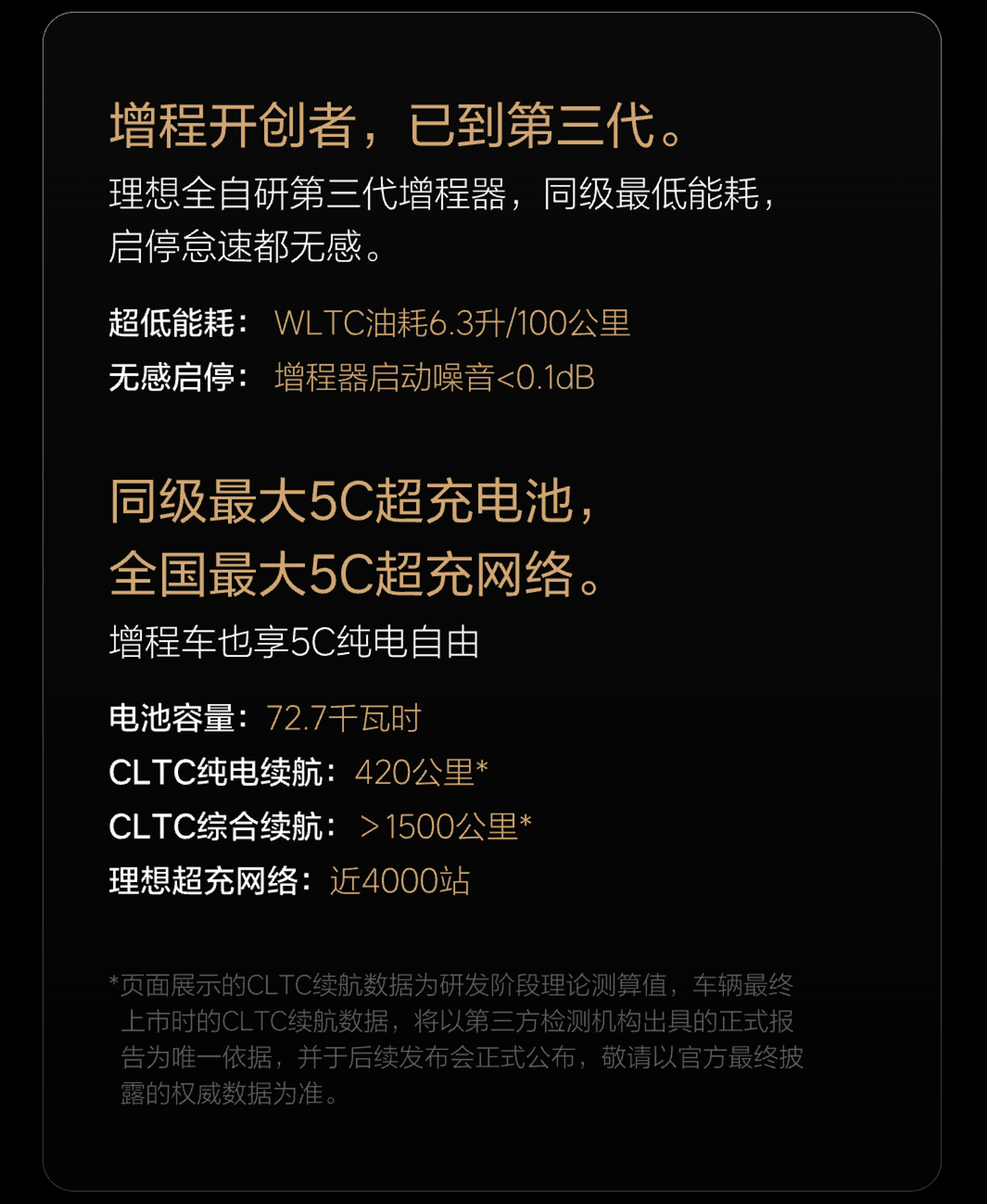 电池方面,理想L9 Livis将搭载理想汽车自研第三代增程系统,内置72.7千瓦时电池,CLTC纯电续航达420公里;CLTC综合续航超1500公里。值得注意的是,理想L9 Livis将支持理想5C超充。