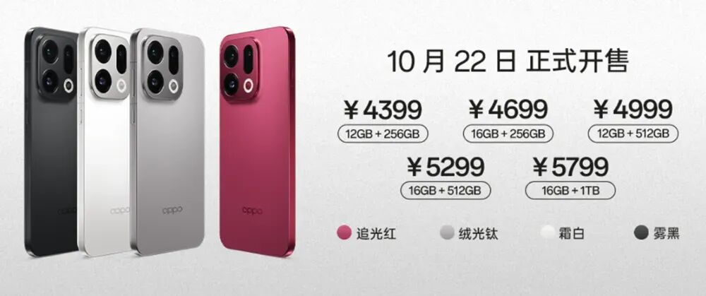 售价方面,标准版12GB+256GB版本4399元;16GB+256GB版本4699元;12GB+512GB版本4999元;16GB+512GB版本5299元;16GB+1TB版本5799元,10月22日正式开售。