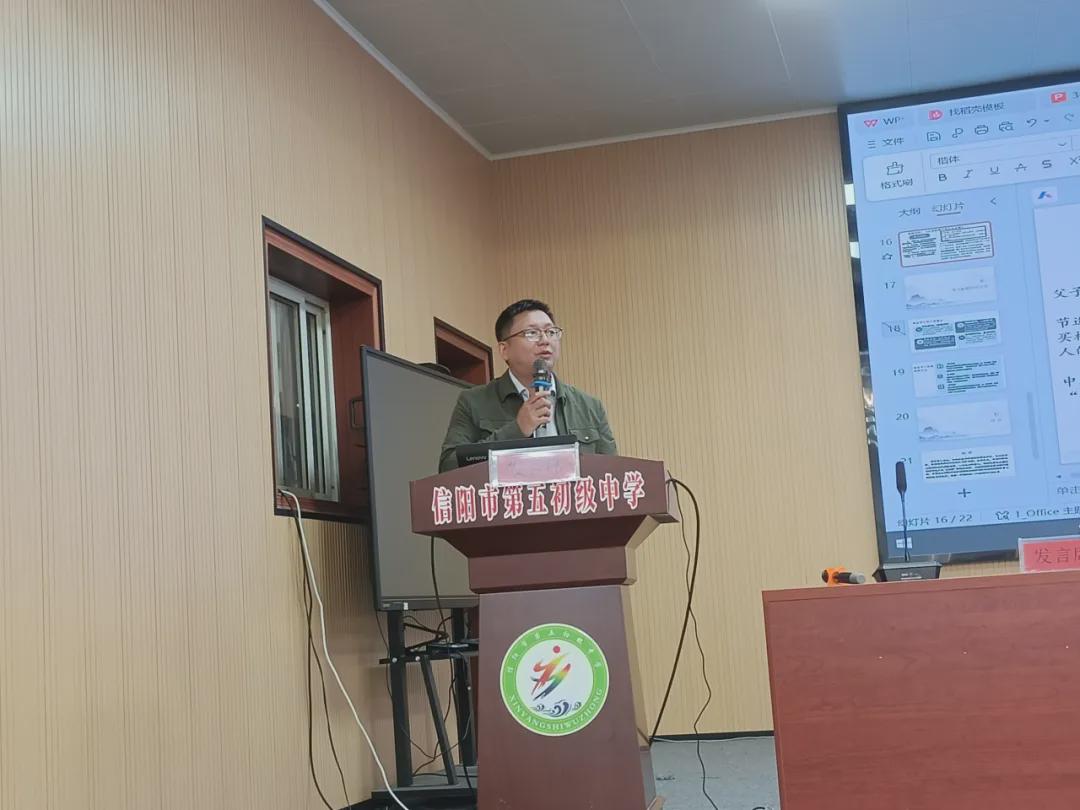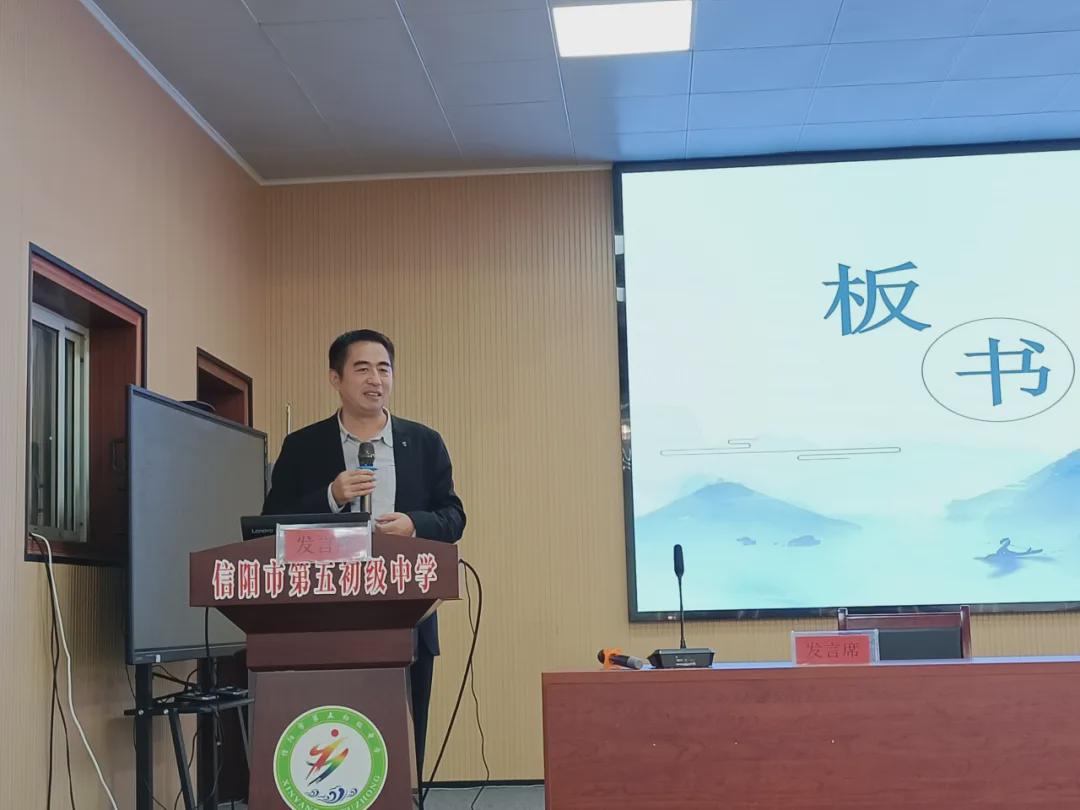 信阳市五中党委书记张磊做总结讲话,并对全体参会教师提出建议: