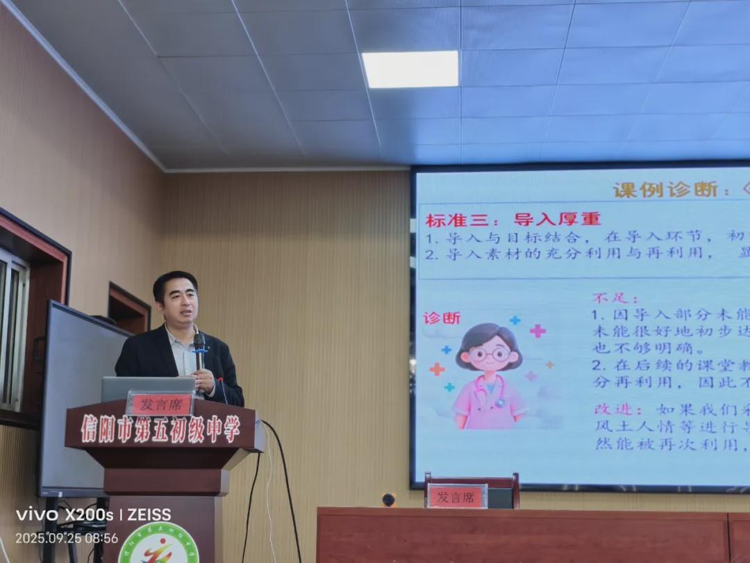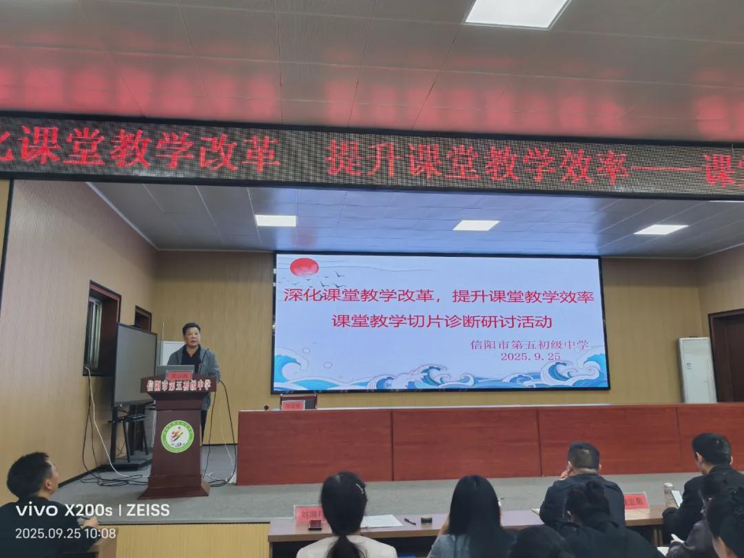 秋意渐浓研思笃,聚力赋能启新程。为深化课堂教学改革、切实提升教学效果,9月24日-25日,信阳市五中举行“深化课堂教学改革 提升课堂教学效率——课堂教学切片诊断研讨活动”,本次活动特聘河南省课堂教学研究中心主任魏宏聚教授现场指导,来自市五中及区一小、六小、七小,八小共600余位老师参加,研讨活动聚焦课堂诊断分析、研究课堂教学效率,旨在提升课堂教学品质、优化教学活动设计,引发参会教师深度反思,为区内合作教研提供良好范例。