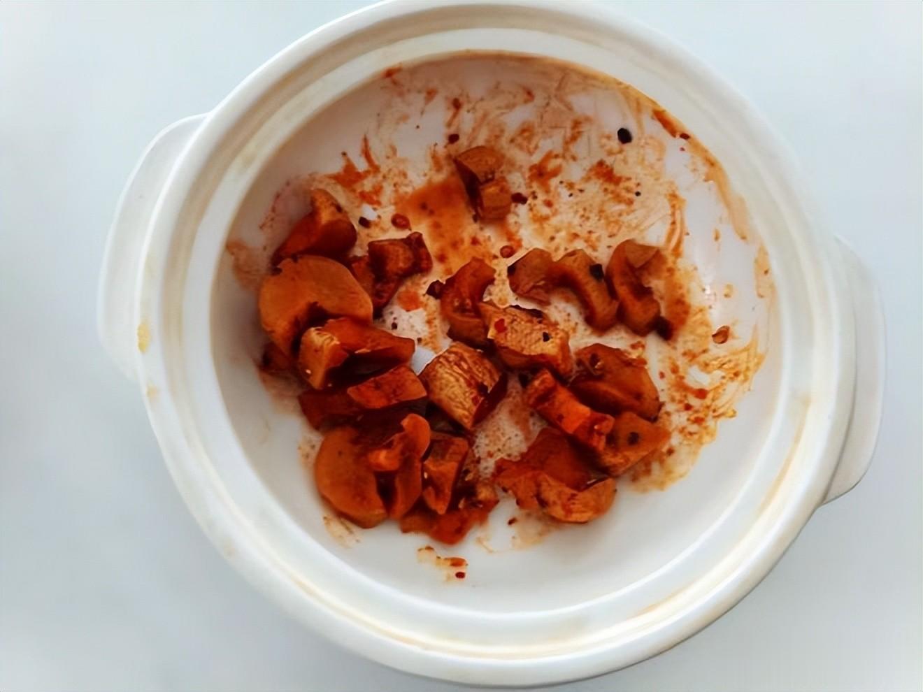 麻辣萝卜干,这是买的早餐小菜,偶尔吃几块,真是很开胃了!