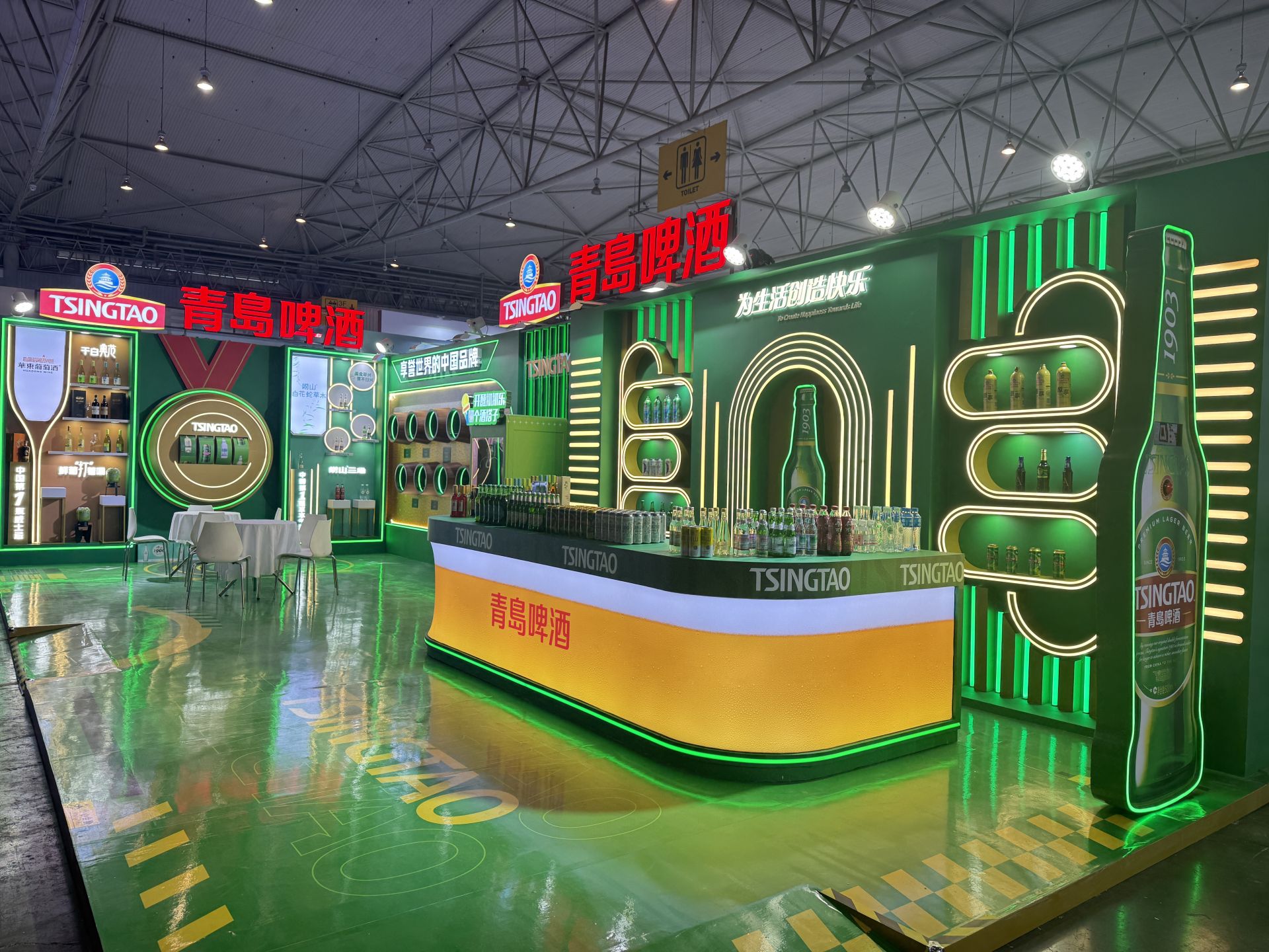 本次青岛馆采用“分区联动,场景融合”的新思路,打破传统局限,将酒类、海洋食品、休闲农品等展区自然衔接,既凸显各品类特色,又形成整体视觉效果。同时,青岛馆创新融入“参展+品鉴+体验+打卡”的多元空间理念,设置开放式洽谈区与互动体验区,兼顾商贸对接与参观需求,既强化了青岛馆城市会客厅的开放属性,又帮助企业打造合作对接平台,助力青岛食品酒类产业高质量发展。