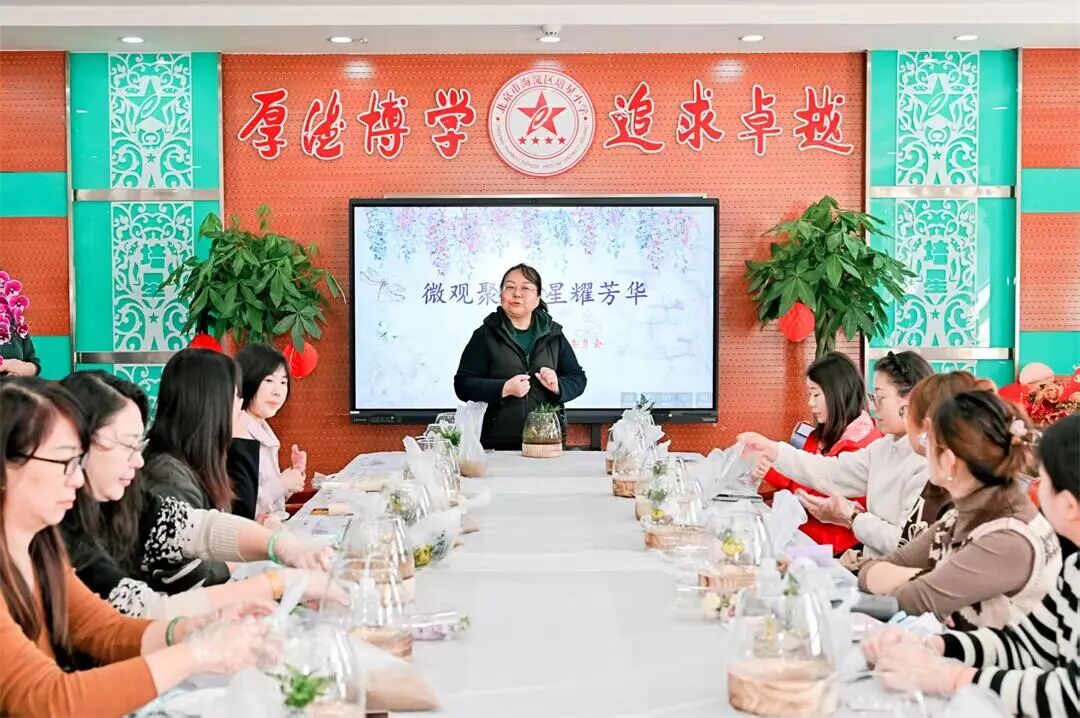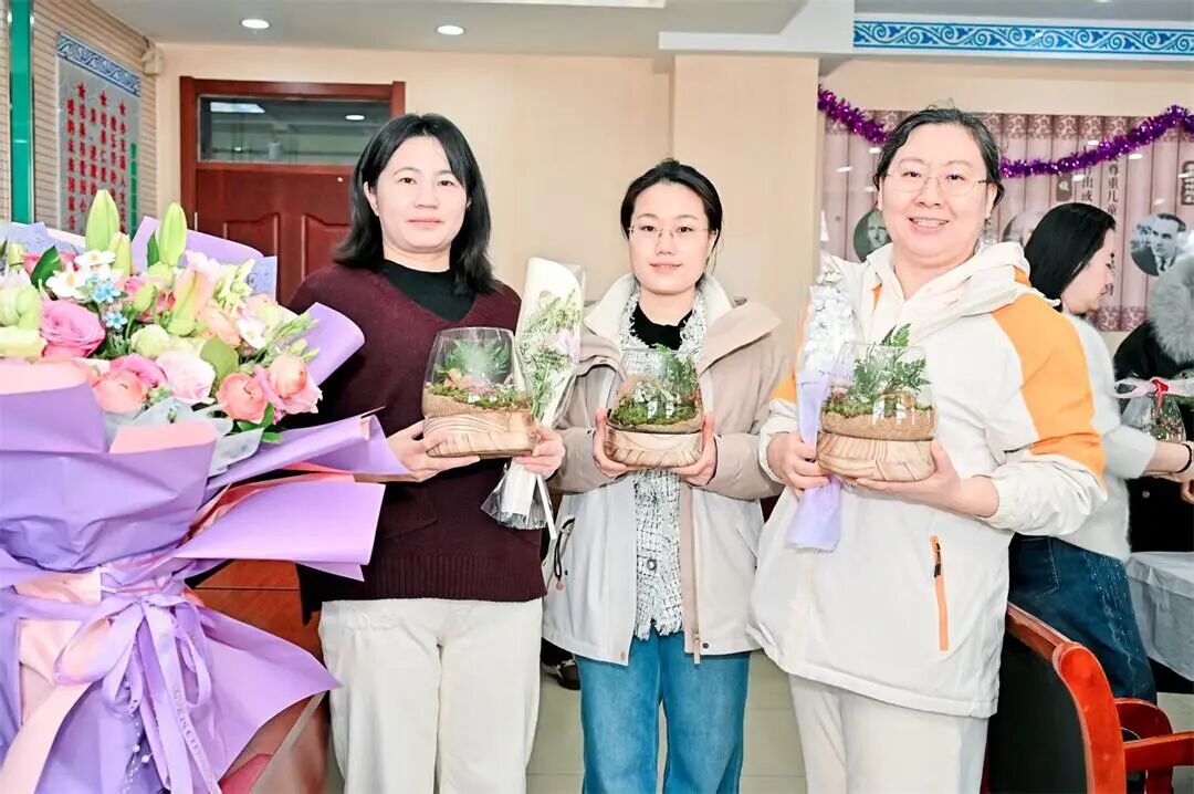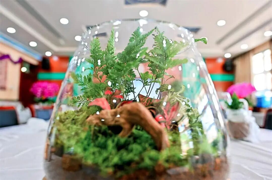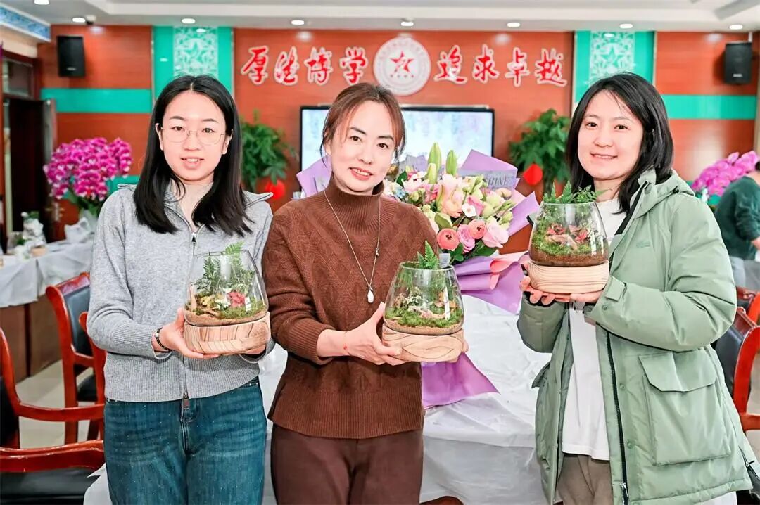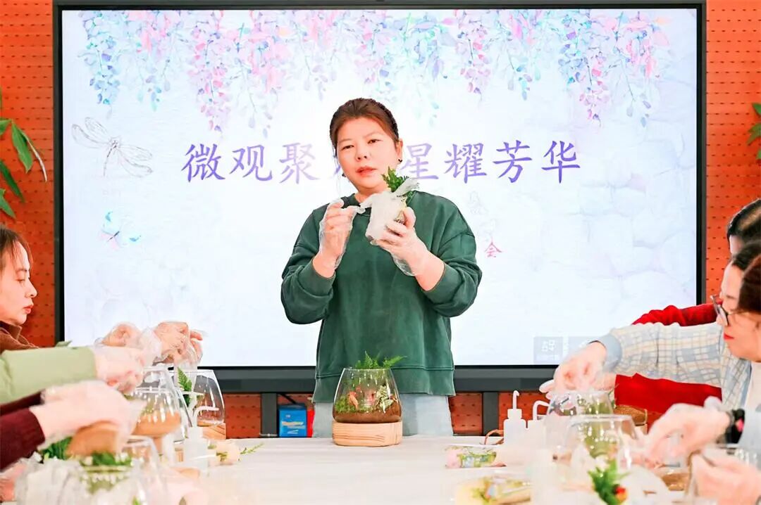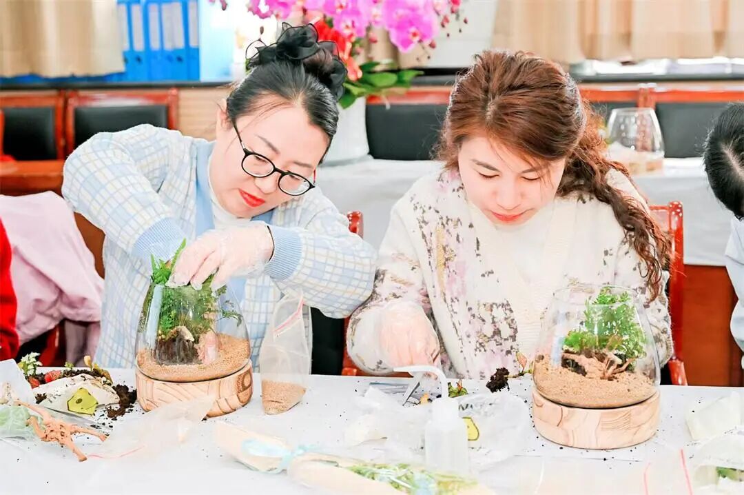 一早,教师们齐聚南校二层会议室。活动伊始,学校党支部副书记、工会主席王红霞同志代表学校党政工会为老师们送上最真挚的节日问候与祝福,随后开启“指尖微世界”微景观DIY之旅。铺土、植绿、布景……在专业老师指导下,大家沉浸于自然的疗愈之中,将春日绿意装进方寸玻璃瓶。一土一石,皆是创造;一草一木,皆为治愈。做一景微世界,培育心中力量,在动手间舒缓压力,在互动中增进情谊。