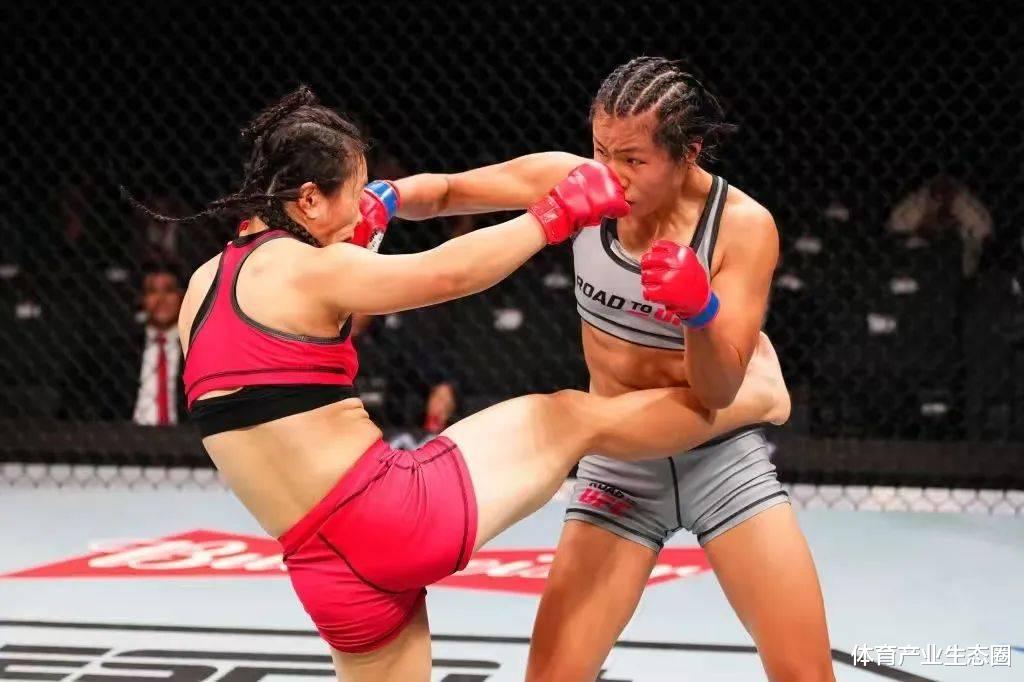 去年11月,在UFC澳门站精英之路的女子草量级决赛,赛前普遍不被看好的石铭,惊人地在逆境之下「翻盘」。比赛最后一回合,她以一记力道十足的高扫击倒对手,瞬间令全场沸腾。