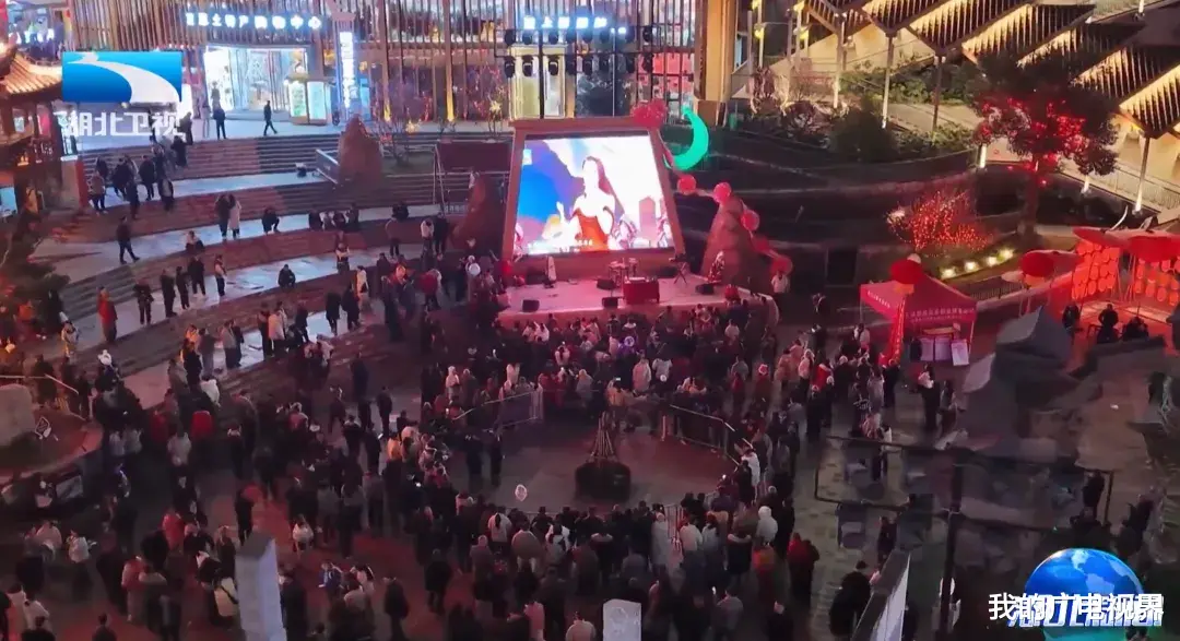 这种转化并非凭空而来。晚会播出当晚,户外观看热潮同步在湖北多地开启。武汉木兰不夜城近万名观众齐聚,大屏上春晚画面与线下节庆活动同步上演;恩施宣恩县寨遇广场,近千名观众挤满广场,为土家摆手舞点赞。