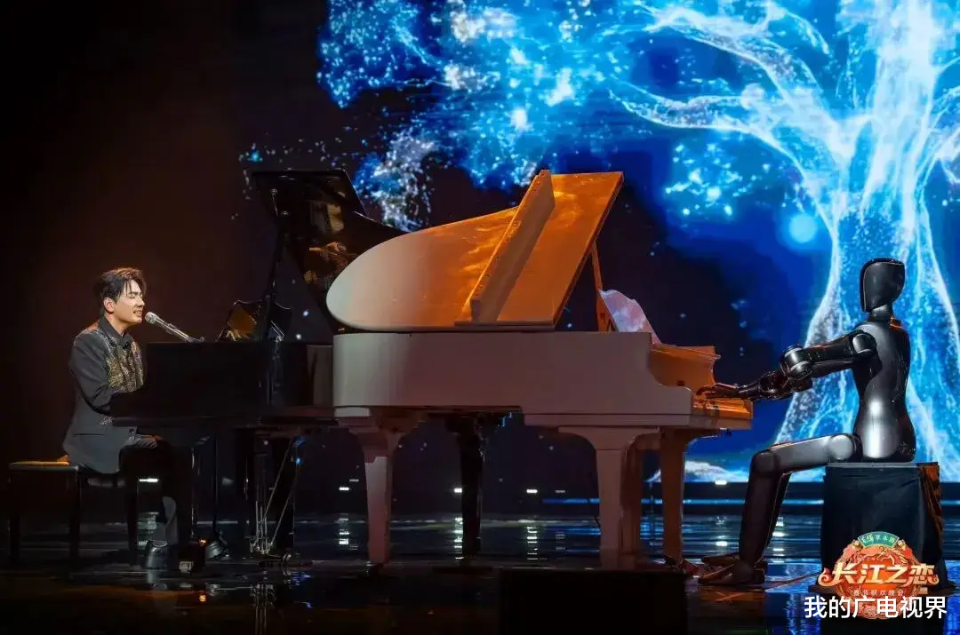 开场节目中,机器马身着华服与舞者同台热舞,憨态可掬;海来阿木演唱《不如见一面》时,机器人坐在钢琴前与他完成对弹,仿生蝴蝶环绕飞舞,这不仅是舞台的亮点,更是湖北“光谷”产业自信的侧面写照。