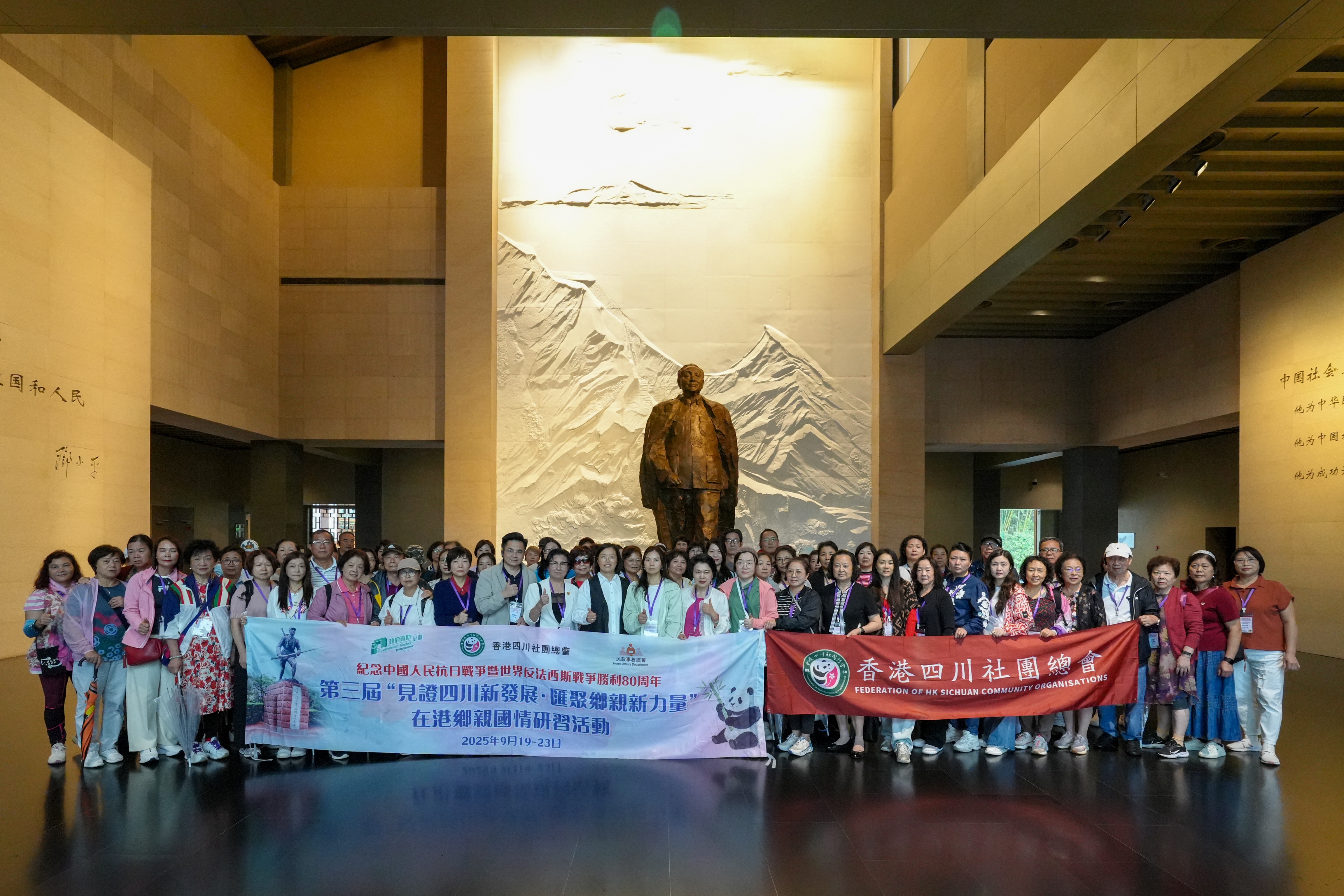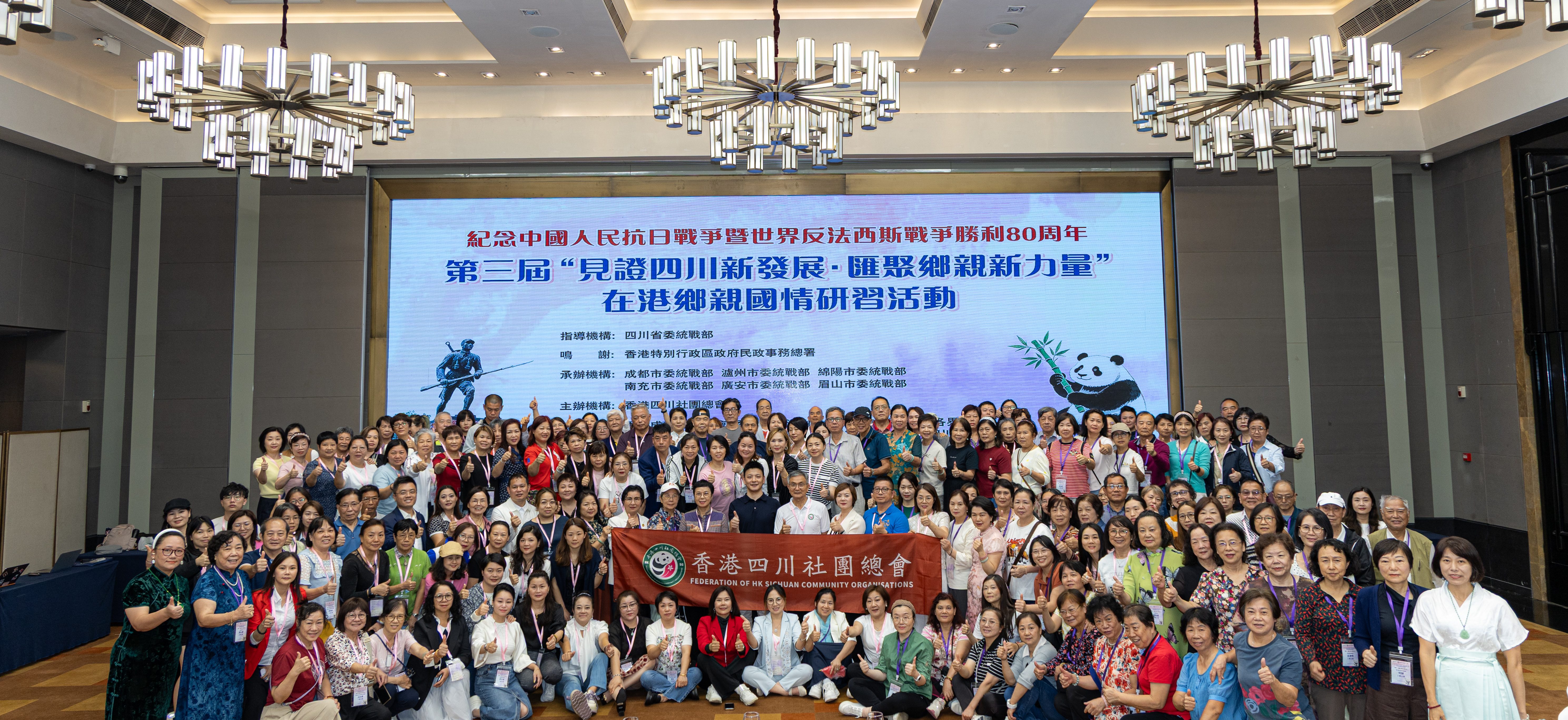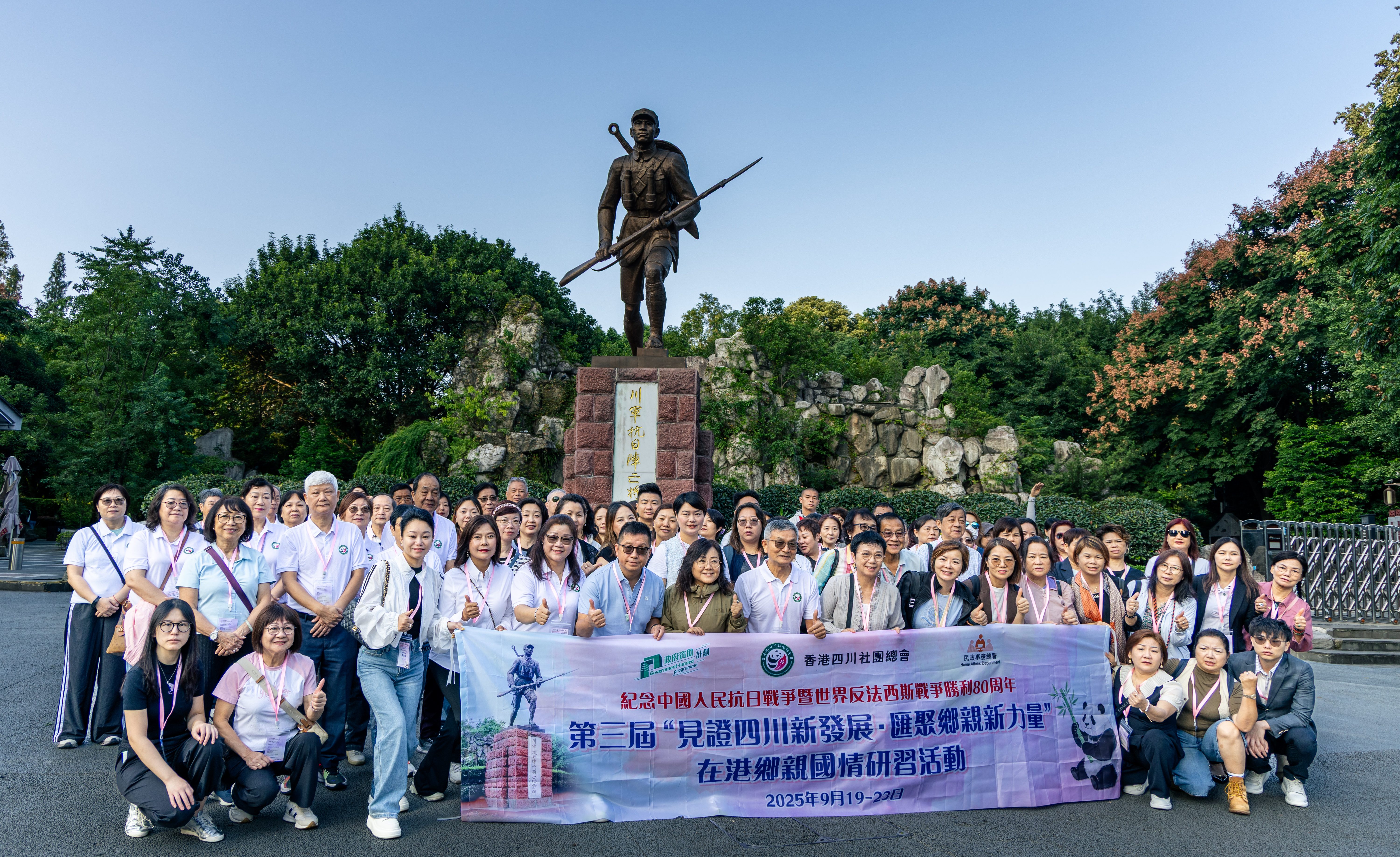为纪念中国人民抗日战争暨世界反法西斯战争胜利 80 周年、中华人民共和国成立 76 周年两大重要历史时刻,进一步推动在港乡亲与社区市民厚植家国情怀,由四川省委统战部指导,成都市委统战部、泸州市委统战部、绵阳市委统战部、南充市委统战部、广安市委统战部、眉山市委统战部联合承办,香港四川社团总会主办,香港成都社团总会、香港四川泸州同乡联谊会、香港广安各界联合会、香港绵阳联谊总会、香港南充联谊会、香港眉山联谊会、四川长江职业学院协办,香港华畅东方文化国际交流有限公司(以下简称「华畅东方」)承接的 2025 年第三届「见证四川新发展・汇聚乡亲新力量」在港乡亲国情研习活动,于9月19日至23日在四川圆满落幕。200名在港乡亲分两路走进四川多地,通过实地参访和交流研习,重温抗战光辉岁月,见证新时代发展成就,以赤子之心凝聚爱国爱港力量。