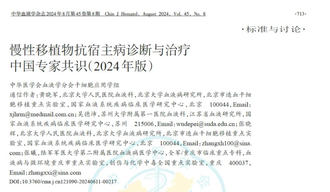 为规范cGVHD的诊断与治疗,指导临床实践,中华医学会血液学分会造血干细胞应用学组对《慢性移植物抗宿主病(cGVHD)诊断与治疗中国专家共识(2021年版)》进行了修订及更新,出版《慢性移植物抗宿主病(cGVHD)诊断与治疗中国专家共识(2024年版)》。