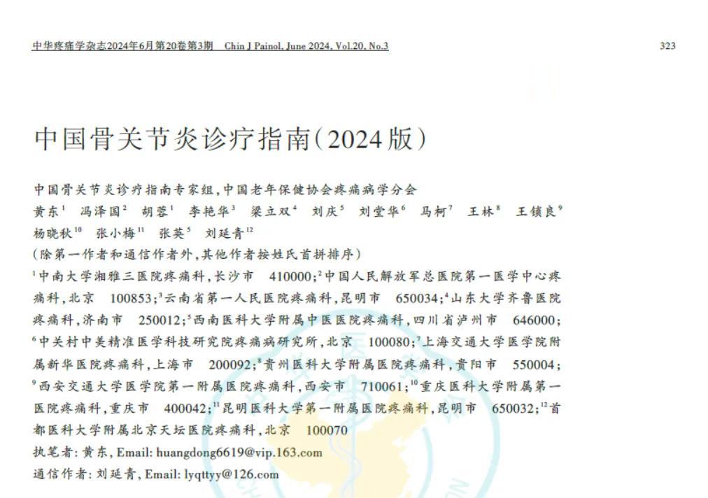 发布机构:中国骨关节炎诊疗指南专家组,中国老年保健协会疼痛病学分会