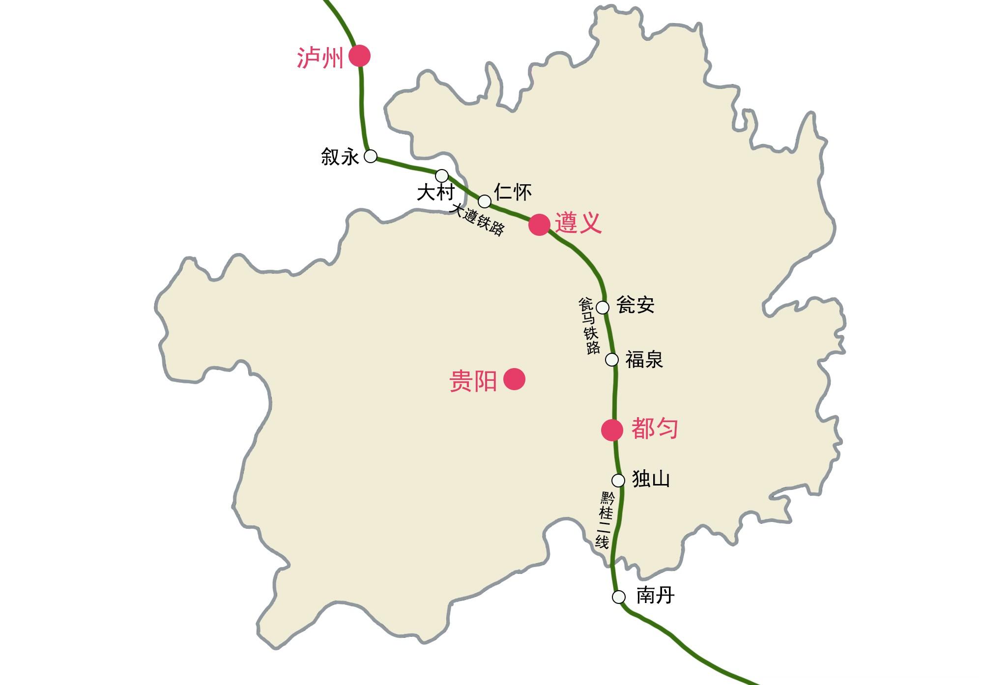 大村—遵义的铁路是对遵义—泸州铁路的取代,在2025年批复建设。国家规划过泸遵铁路,设计时速160公里,但贵州想要建设的是泸遵高铁,导致泸遵铁路流产。为此,大村—遵义铁路出现。大遵铁路,北到古蔺,南到遵义,实际上是遵义—叙永铁路的组成部分。其中叙大铁路在2021年已经通车了,所以只需要新建设一条134公里的大遵铁路就可以打通成都—遵义的货运新通道,也就可以取代过去的川黔老铁路了。