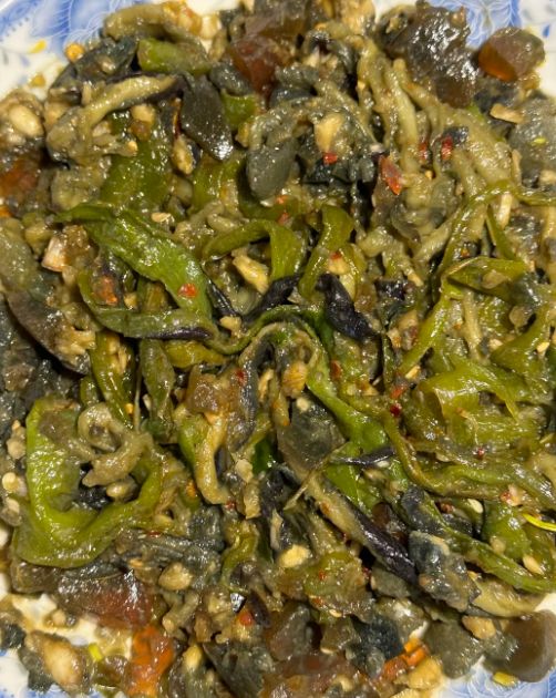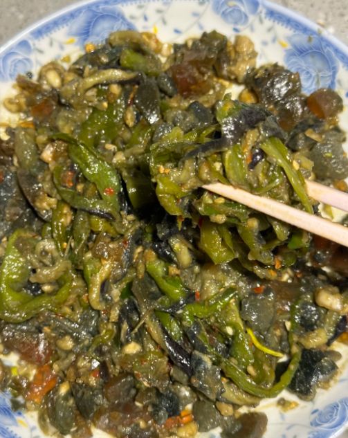 在长沙,有一道菜看起来有点“粗鲁”,吃起来却让人欲罢不能——擂辣椒皮蛋。一个大擂钵,里面放着烤焦的青椒和切开的皮蛋,用木杵子捣碎拌在一起,卖相算不上好看,但那股香辣浓郁的味道,能让人闻着就流口水。这道菜的精华在辣椒。用的不是普通青椒,而是薄皮的长线椒,或者更辣的螺丝椒。辣椒放在明火上烤,或者用干锅干煸,直到外皮焦黑起泡,辣椒肉变软。烤好的辣椒趁热撕掉外面那层焦皮,里面的辣椒肉软嫩嫩的,带着焦香。