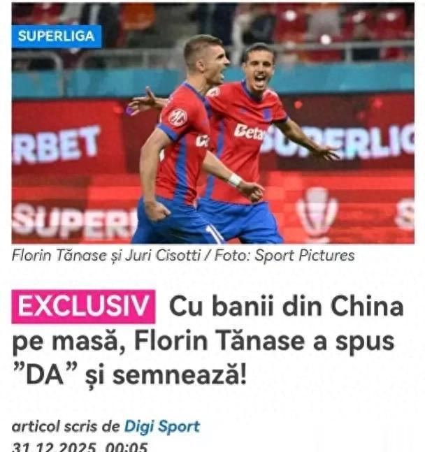 2026年1月1日,罗马尼亚体育媒体“Digi Sport”报道,罗超(也称罗甲)金靴、前欧冠冠军布加勒斯特星中场特纳塞(也翻译为塔纳塞)将登陆中超联赛。由于这一次中国球队的资金已经到位,因此布加勒斯特星前锋特纳塞同意加盟。特纳塞与布加勒斯特星俱乐部之间还有半年的合同,因此这一次中国球队需要支付一笔庞大的转会费。按照媒体分析,完成这次交易的总费用达到了500万欧元之多。