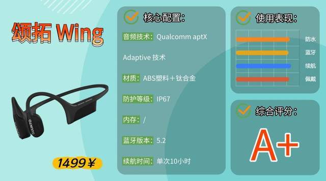 总结:这款产品平衡“佩戴便携”与“音质实力”,防水等级IPX7,能应对汗水与小雨,既适合日常通勤办公,也能满足瑜伽、慢跑等轻运动需求,是中端骨传导耳机的性价比标杆。