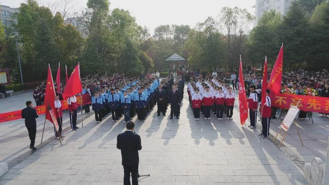 随后,全体师生向革命烈士纪念碑三鞠躬,致敬英雄、告慰英灵。礼毕,团员代表高二(4)班张欣怡同学发言,她表示,作为新时代青年,必将以先烈为榜样,继承革命遗志,勤奋学习,立志报国,用实际行动践行青春誓言。