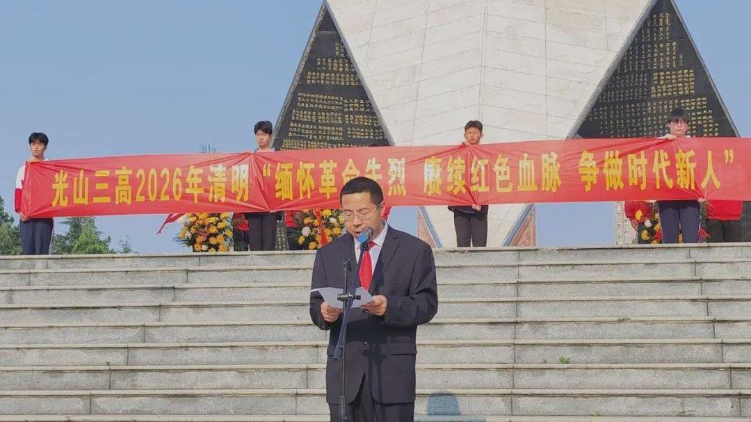又是一年清明时,春风落日寄哀思。为缅怀革命先烈的丰功伟绩,传承红色基因,厚植师生爱国主义情怀,2026年4月1日上午,光山三高组织高一、高二团员代表及党员教师代表,前往光山县鄂豫皖烈士陵园,开展“缅怀革命先烈 赓续红色血脉 争做时代新人”主题党团日活动。此次活动由校长郭帅主持。