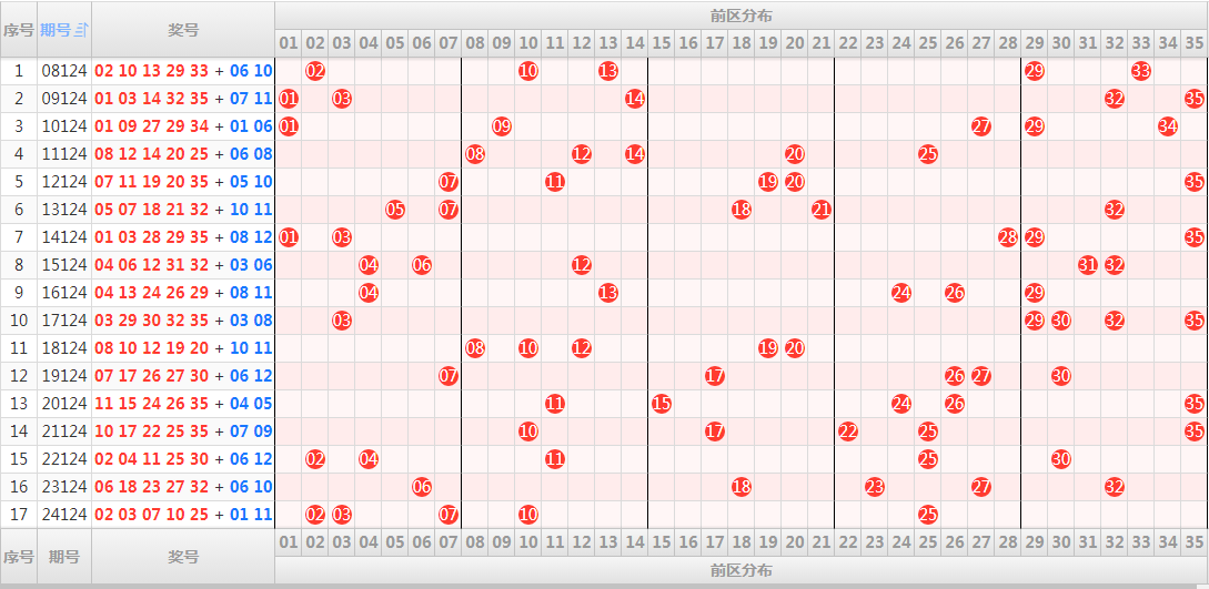 六、历史同期,前区开奖结果和走势图(历史数据演示):