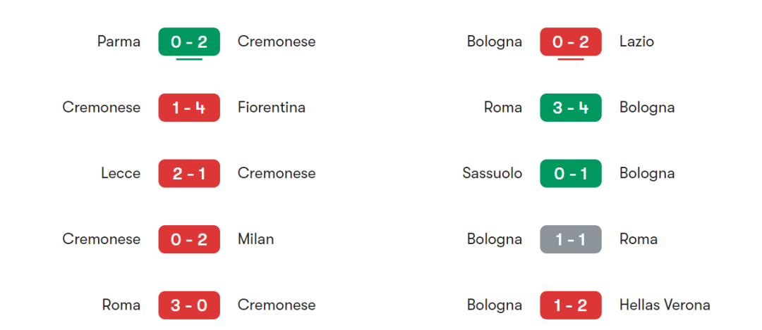 两队近年交锋次数不多,近5次正式交手,克雷莫纳1胜3平1负,双方基本势均力敌。本赛季首回合对决成为关键转折点,去年12月,克雷莫纳客场3-1大胜博洛尼亚,爆出不小冷门。那场比赛克雷莫纳凭借高效反击,抓住博洛尼亚后防失误连入3球,不仅拿到宝贵3分,更建立起对阵博洛尼亚的心理优势,打破了此前对阵对手的劣势局面。