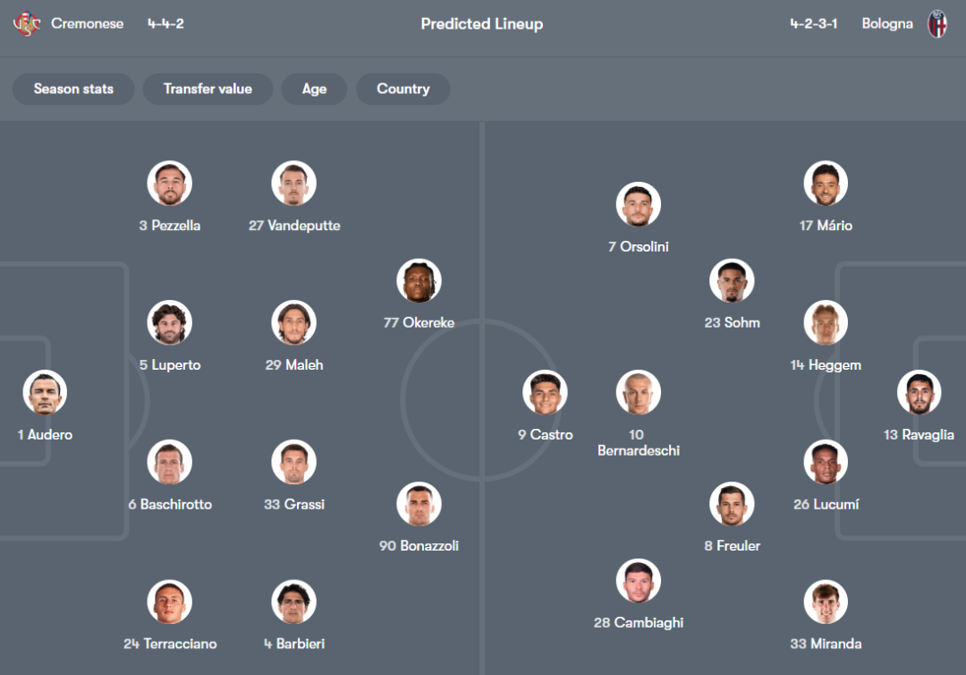 这种战术恰好精准克制博洛尼亚的4231体系:用双边前卫+边后卫锁死对手边路渗透,双后腰切断其中路连接,再利用快速反击打击博洛尼亚残缺的后防线,这正是首回合克雷莫纳3-1取胜的核心战术,如今在换帅后战术磨合更成熟的情况下,这套打法的效果将更显著。