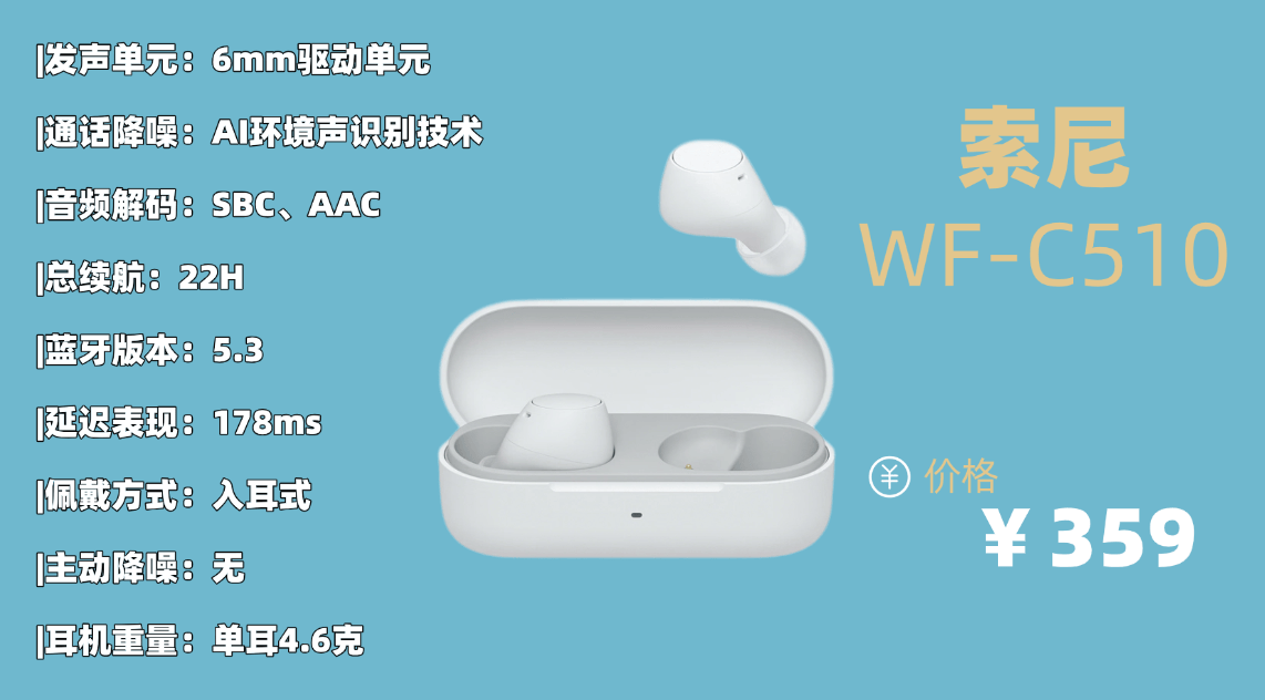 综合标杆品牌3.索 尼WF-C510蓝牙耳机