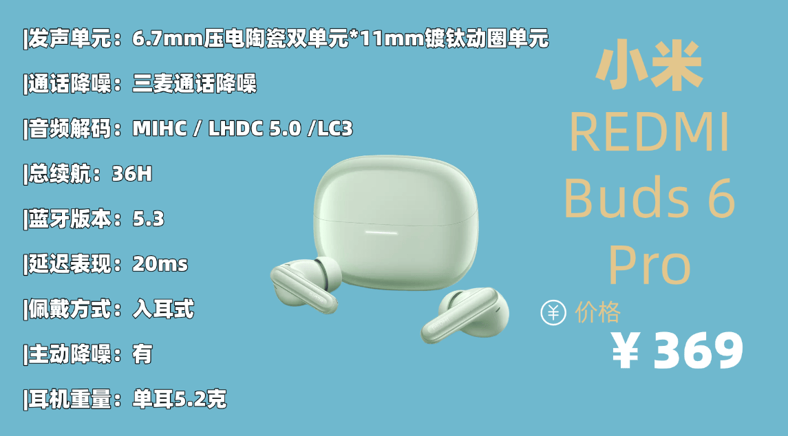 综合标杆品牌10.小 米R EDMI Buds 6 Pro蓝牙耳机